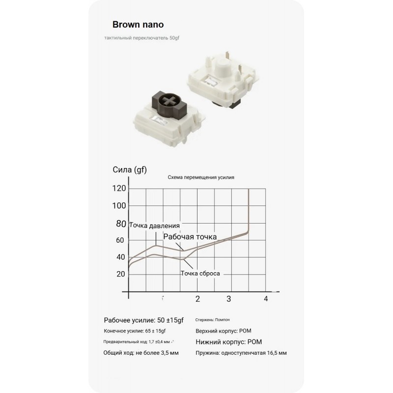 - Горячая замена переключателей (Hot‑Swap) низкопрофильные Gateron Low‑Profile 3.0. Замена без пайки — быстро и удобно для кастомизации.