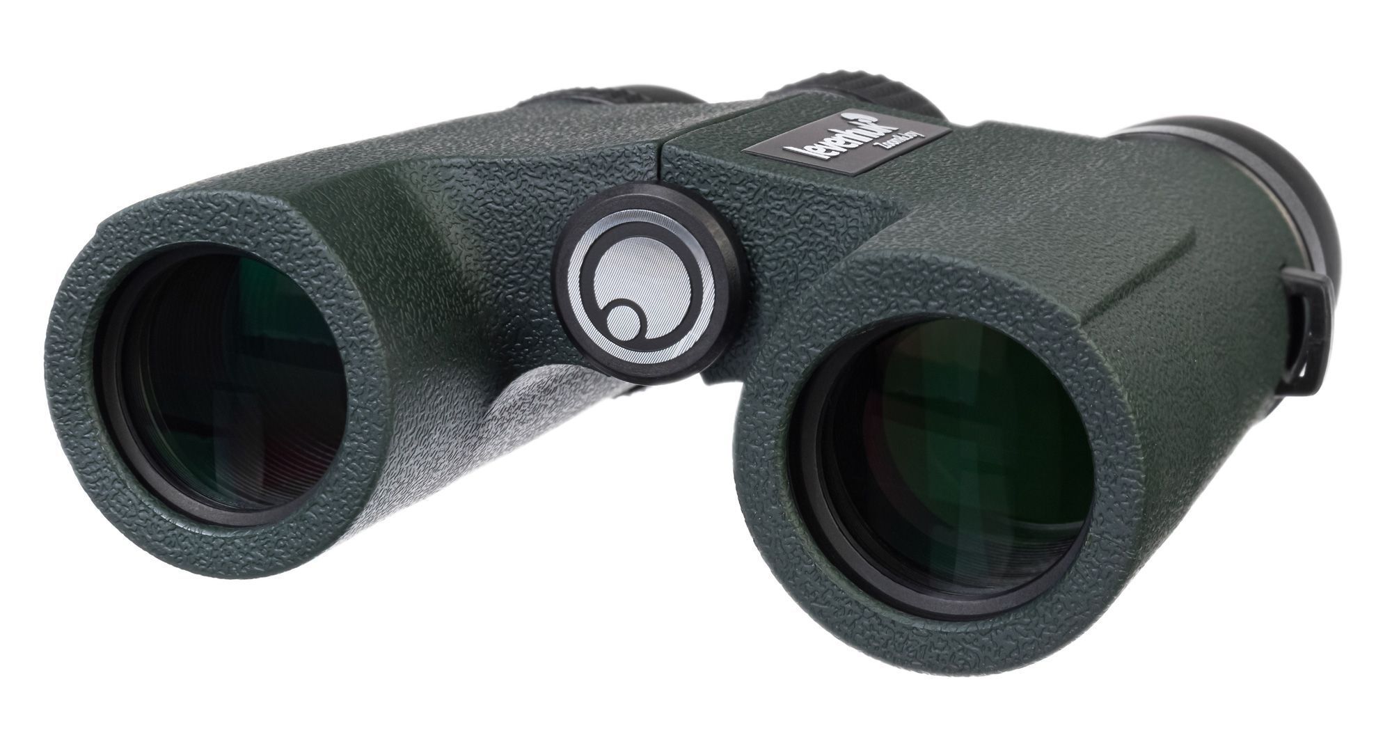 Удобство использования – еще один повод выбрать бинокль Levenhuk Karma PRO 10x25. Межзрачковое расстояние можно регулировать, поворотно-выдвижные наглазники позволяют плавно менять положение прибора относительно глаз. На правом окуляре есть кольцо настройки диоптрий. Плотное резиновое покрытие защитного цвета смягчает удары и защищает корпус от механических повреждений. Рельефная поверхность обеспечивает надежный захват.