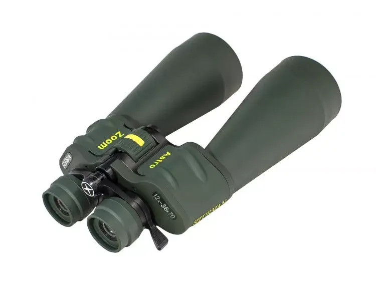 Бинокль Sturman 12-36x70 (или Zoom-бинокль) обеспечивает возможность регулировки увеличения в диапазоне от 13х до 36 х в зависимости от ситуации (т.е. позволяет выбрать кратность, необходимую для наблюдения за объектом в зависимости от дальности его расположения, не меняя при этом позиции наблюдателя). Плавный переход от одного увеличения к другому выполняется с помощью рычажкового механизма.