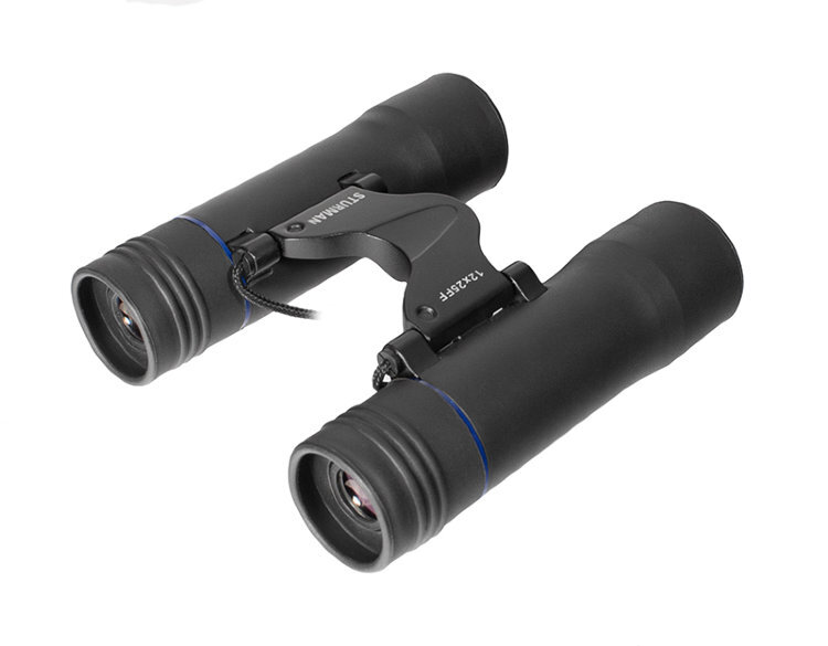 Бинокль Sturman 12x25 FF – это малый вес (менее 200 г) и компактность, эргономичный современный дизайн и хорошее качество картинки. Корпус спроектирован по типу «Open Hinge» или иначе «открытый шарнирный мост». Это позволяет в нерабочем состоянии удобно поместить бинокль в чехол или сумку, сложив (повернув на шарнирах) зрительные трубы к центральной оси, и минимизировать пространство для хранения.