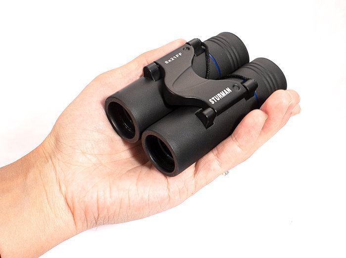 Бинокль Sturman 8x21 FF – это малый вес (менее 200 г) и компактность, эргономичный современный дизайн и хорошее качество картинки. Корпус спроектирован по типу «Open Hinge» или иначе «открытый шарнирный мост». Это позволяет в нерабочем состоянии удобно поместить бинокль в чехол или сумку, сложив (повернув на шарнирах) зрительные трубы к центральной оси, и минимизировать пространство для хранения.