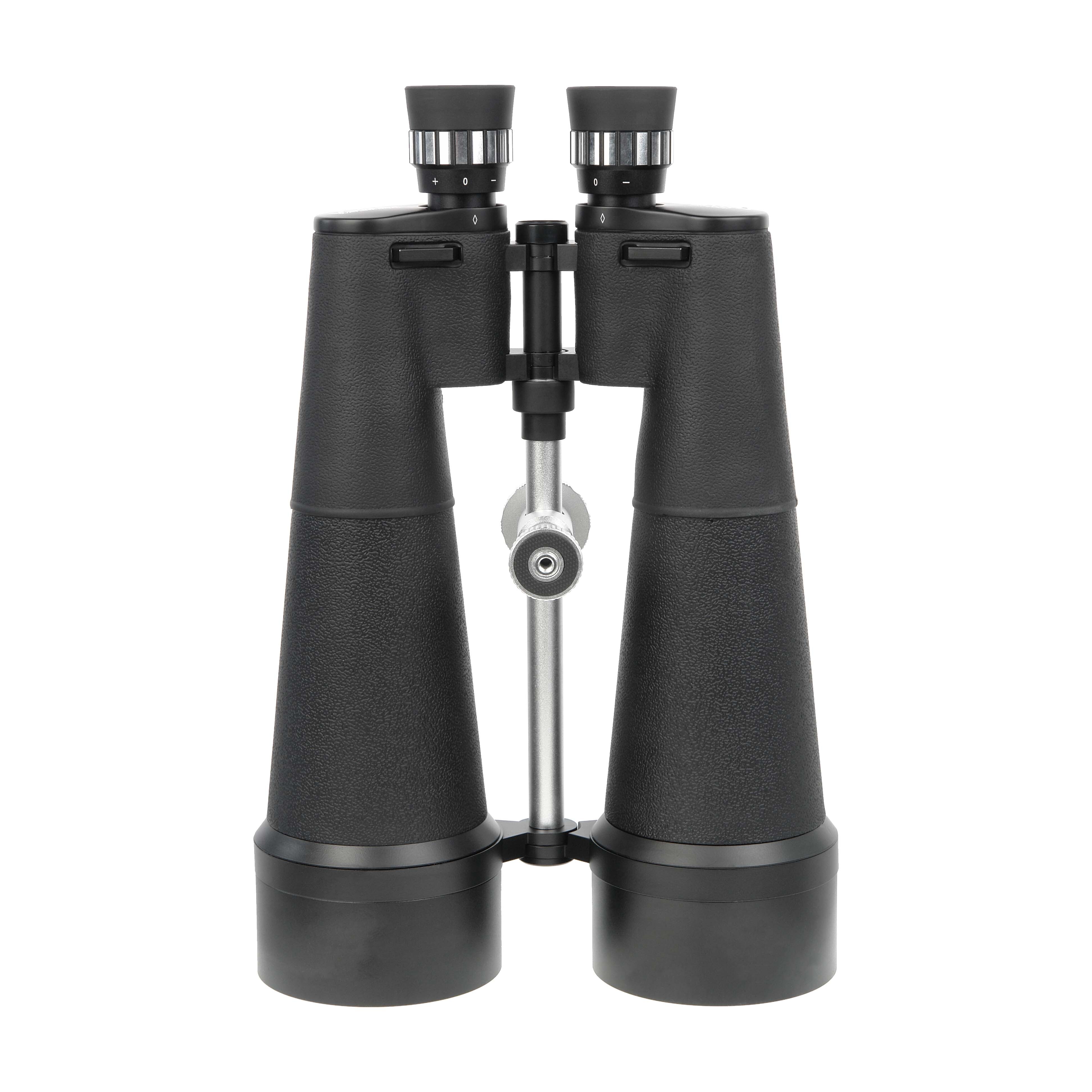 Многослойное просветление оптических элементов и высокое светопропускание позволяет максимально четко видеть даже небесные светила. Окуляры регулируются раздельно (нет центрального фокусирующего механизма), как в профессиональных биноклях. Оптические элементы изготовлены из высококачественного стекла BAK-4. Крепление под штатив ¼ дает возможность установки бинокля на большинство фотоштативов европейских, азиатских и американских производителей. В комплект входит алюминиевый кейс для переноски.