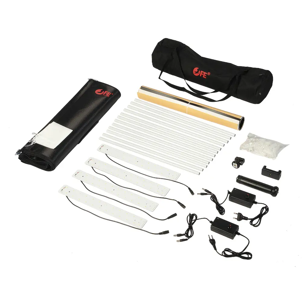 Компактность фотобокса в сложенном виде и сумка-переноска размером 55х14,5х14,5 см обеспечивают удобство работы на выезде. Вес комплекта в сумке всего 2,5 кг.