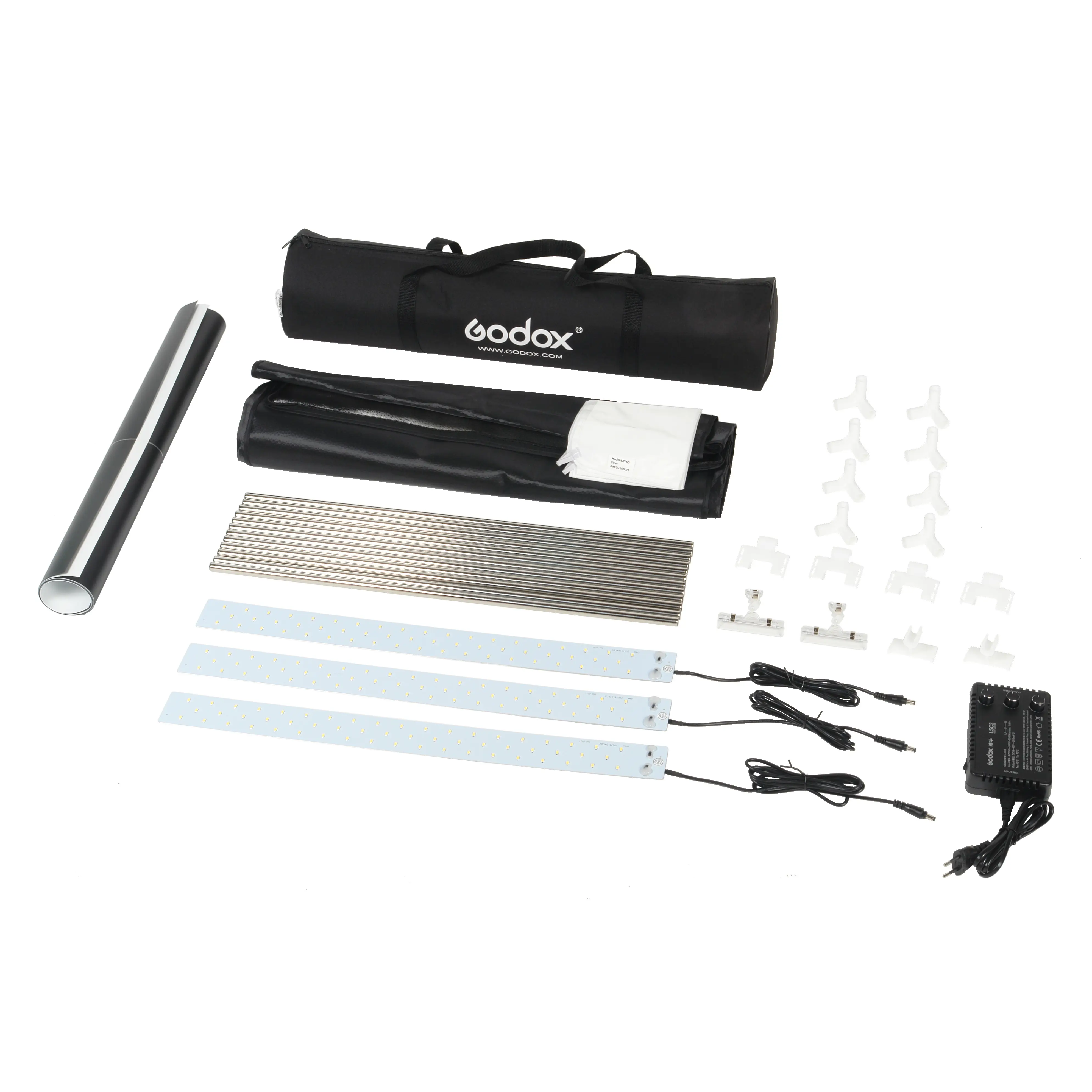 В комплекте используются три светодиодные линейки с регулируемой яркостью и тканевый рассеиватель, чтобы освещение объекта съемки было ярким и равномерным. Световой поток многократно переотражается внутри софтбокса благодаря серебристому фактурному покрытию – на снимках отсутствуют резкие тени и пересветы, поэтому постобработка фотографий не требуется.