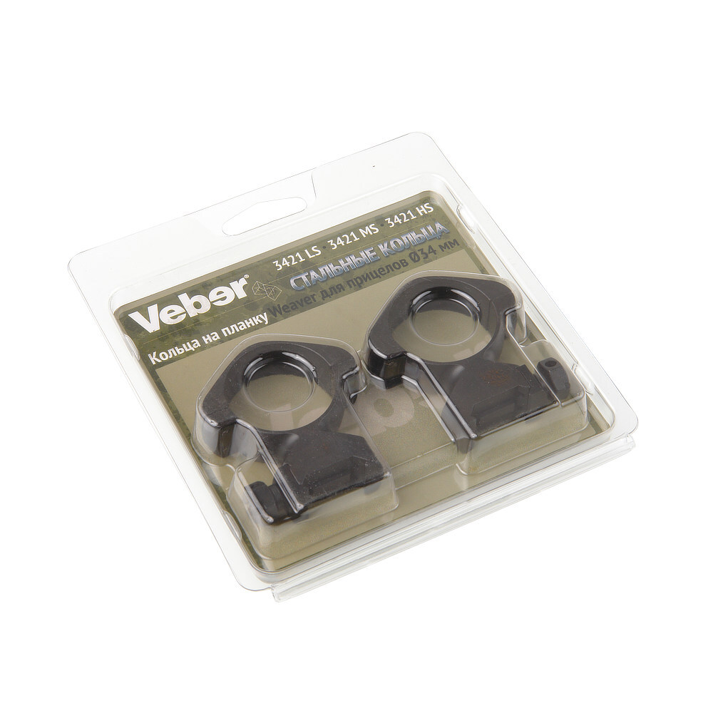 Средние кольца Veber 3421 MS предназначены для установки прицела с посадочным диаметром 34 мм на оружие с планкой Weaver шириной 21 мм.