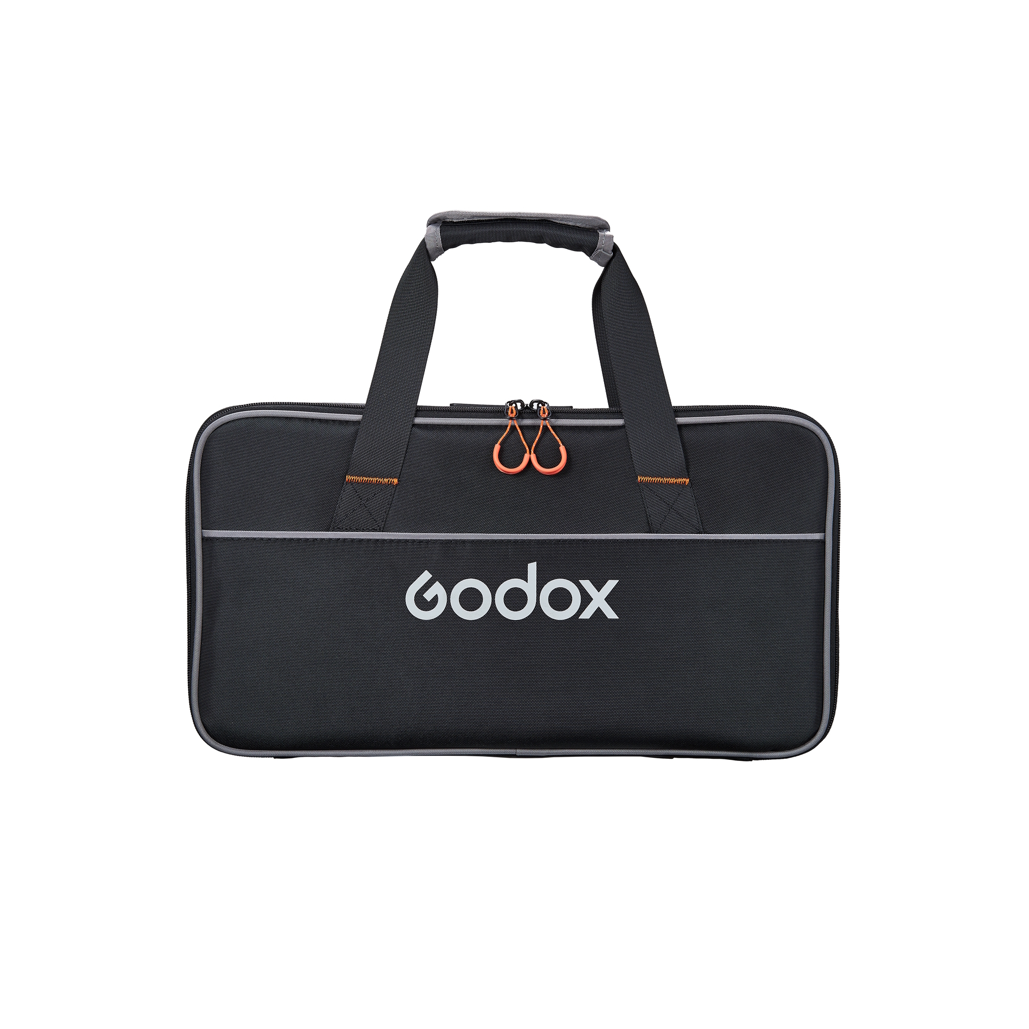 Комплект из осветителей и аксессуаров очень компактен, прост в установке и настройке. Легко складывается для хранения или перевозки в портативную сумку Godox СВ70. Сумка застегивается на молнию, снабжена ручками для переноски, а также окошком для багажной бирки.