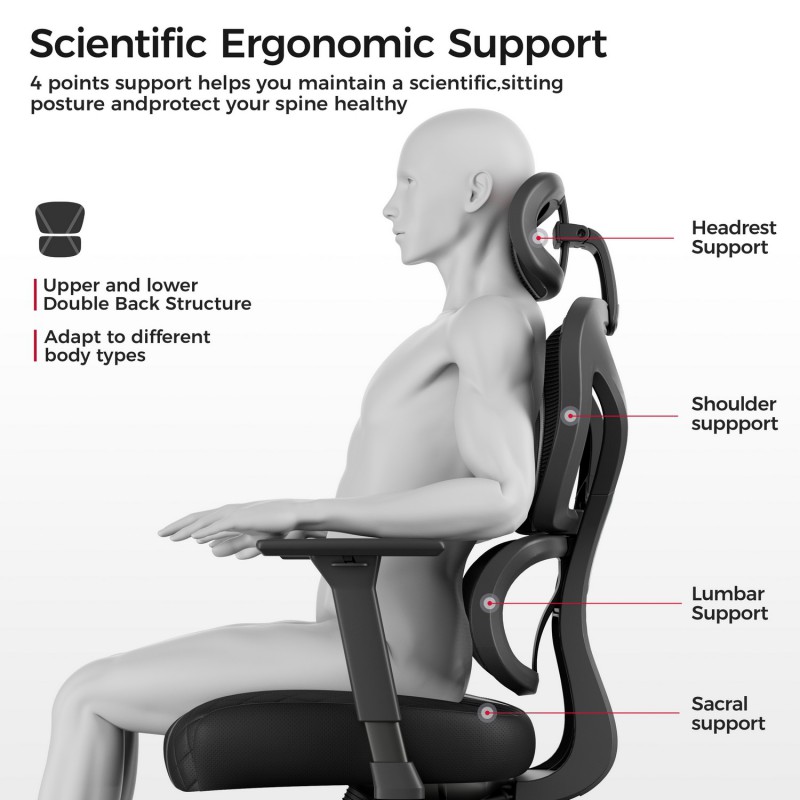 - Эргономичная спинка: идеально поддерживает ваши плечи, обеспечивает достаточную пояснично-крестцовую поддержку и подходит для людей, которым требуется удобное положению для работы или отдыха.