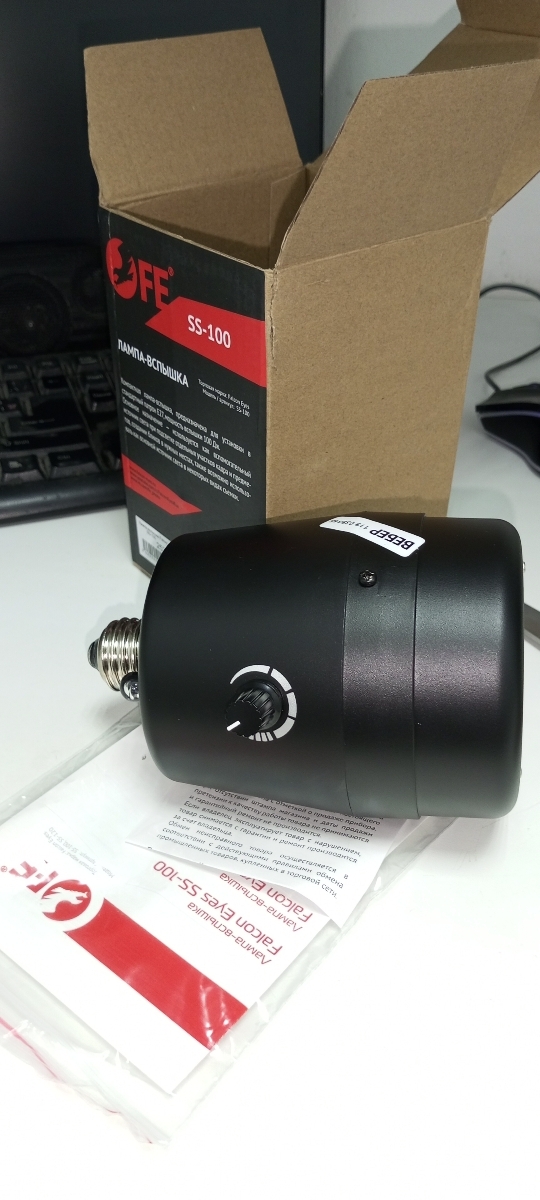 Falcon Eyes SS-100 компактная лампа-вспышка, предназначена для установки в стандартный патрон Е27, мощность 100 Дж.
