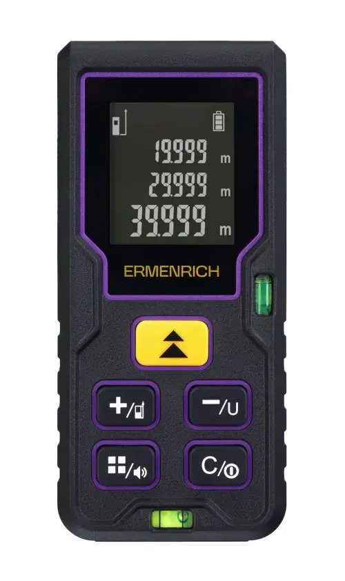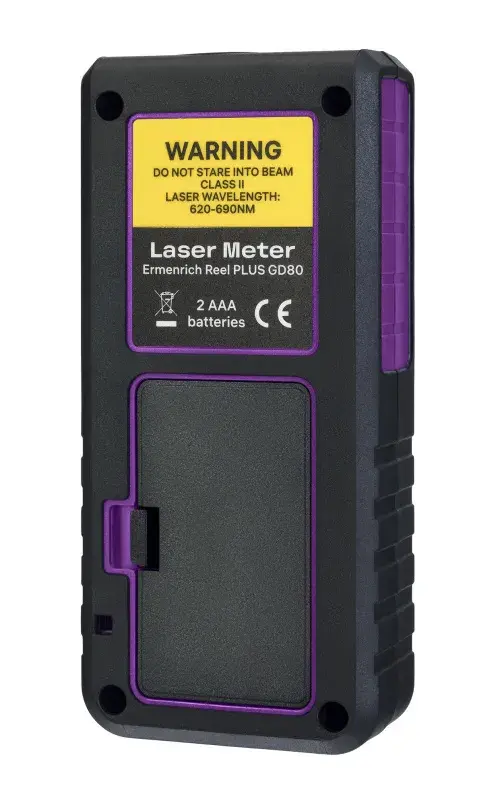Лазерная рулетка Ermenrich Reel PLUS GD80 предназначена для применения в промышленности, строительстве и ремонте, но станет хорошим подспорьем и для домашнего мастера. С помощью этого удобного прибора можно измерять длины любых объектов, а также площади и объемы помещений. Расстояние между двумя точками, в одну из которых невозможно поместить устройство, также может быть автоматически определено путем промежуточных замеров (функция «Пифагор»). Присутствует возможность работы без звуковых оповещений.