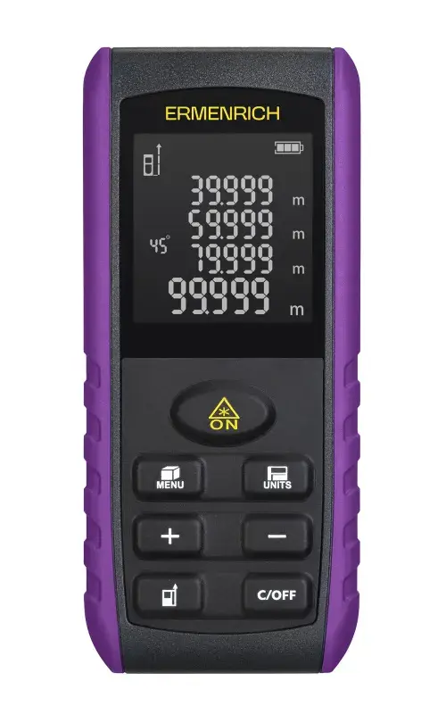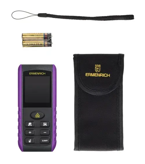 Лазерная рулетка Ermenrich Reel PRO GE60 – многофункциональное устройство для измерения расстояний, объема, площади и углов. Прибор позволяет делать точные замеры даже в сложных условиях, где нет возможности попасть лазером в нужную точку – функция «Пифагор» рассчитывает расстояние на основании промежуточных измерений.