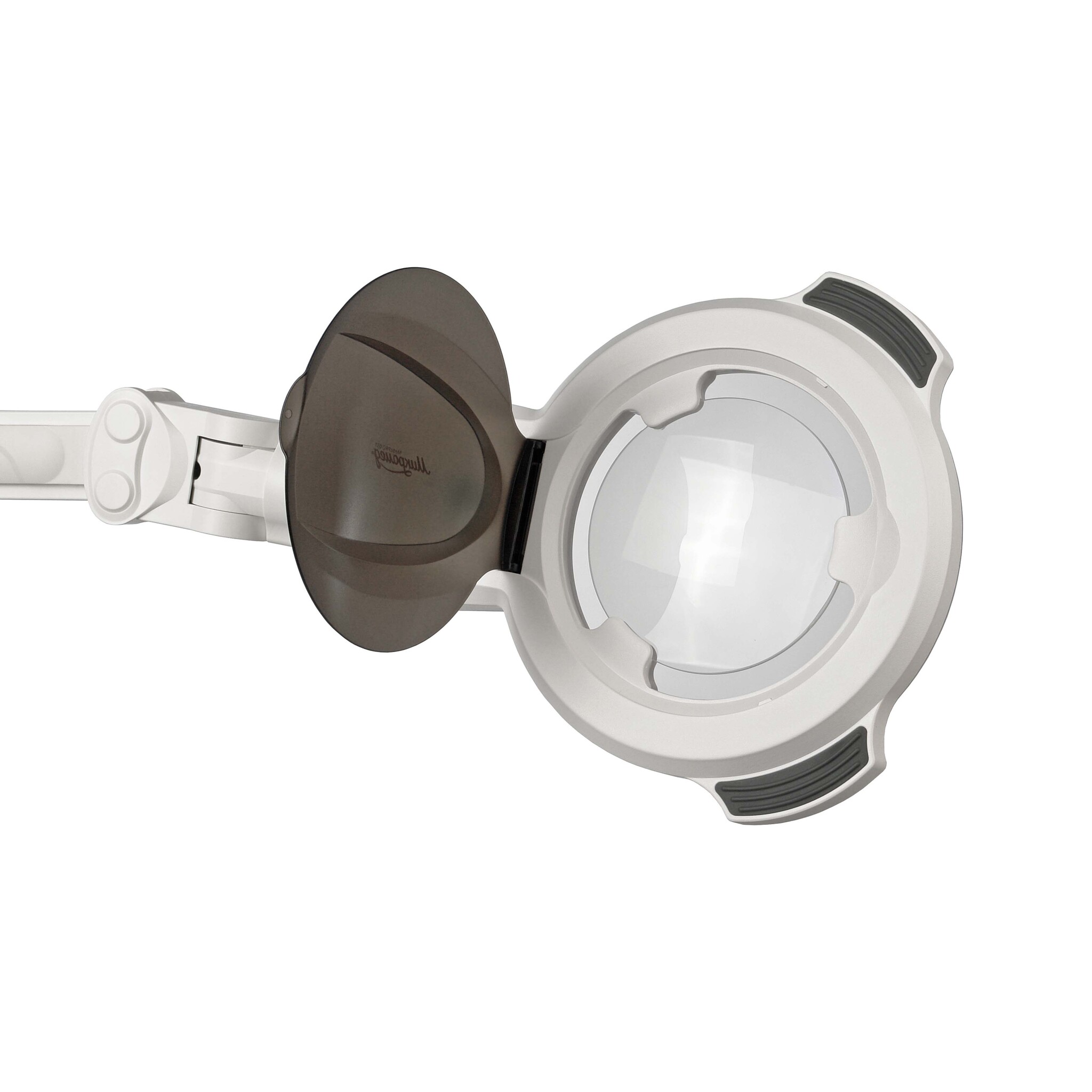 Прибор может использоваться в качестве настольной лампы благодаря пластиковой защитной крышке над линзой. Крышка также защищает лупу от пыли и повреждений.