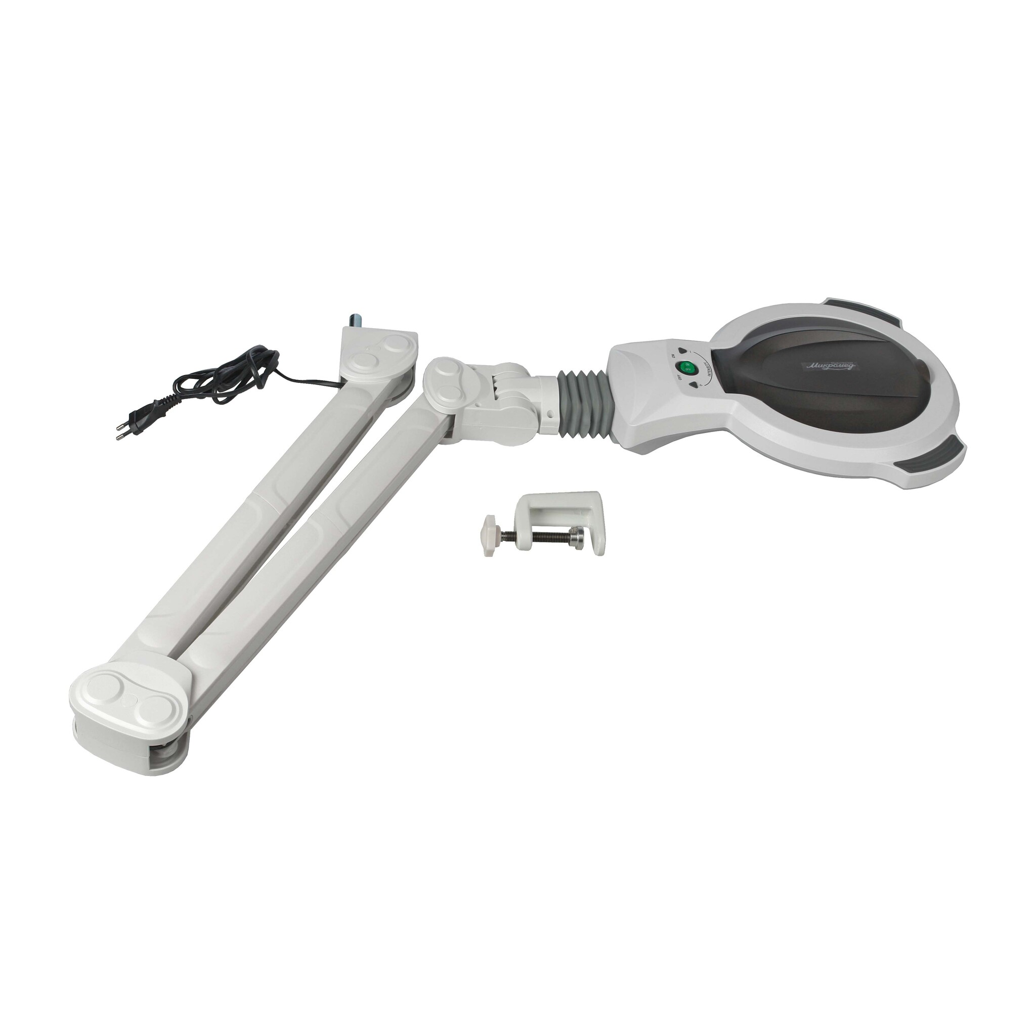 Лупа-лампа Микромед MedicPRO 03T – осветительный оптический прибор, который состоит из кронштейна-пантографа, увеличительной линзы и источника света. В комплекте с Medic 03T также идет металлическая струбцина для крепления лупы-лампы к плоской поверхности толщиной до 4,5 см. Данная комплектация позволит использовать прибор в качестве источника равномерного освещения с возможностью рассматривать мелкие объекты под увеличением.