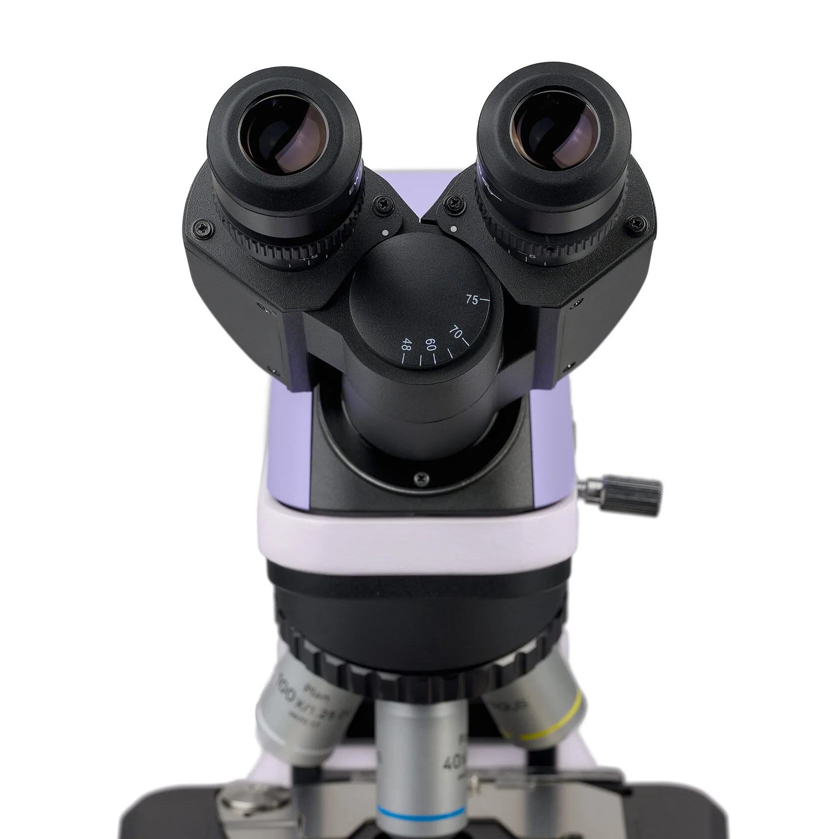 Модель MAGUS Bio 240B – бинокулярный микроскоп с тубусами на бесконечность. Каждый из тубусов может поворачиваться вокруг своей оси на 360 градусов, вынос выходного зрачка регулируется под рост пользователя. Микроскоп оснащен системой подстройки диоптрий на каждом из тубусов: картинка фокусируется автономно под каждый глаз, это актуально для пользователей с различающейся остротой зрения. Для съемки исследований и вывода изображения на экран в микроскоп можно установить цифровую камеру вместо любого из окуляров. В набор микроскопа включены 2 окуляра 10x/20 мм и наглазники для пользователей в очках.