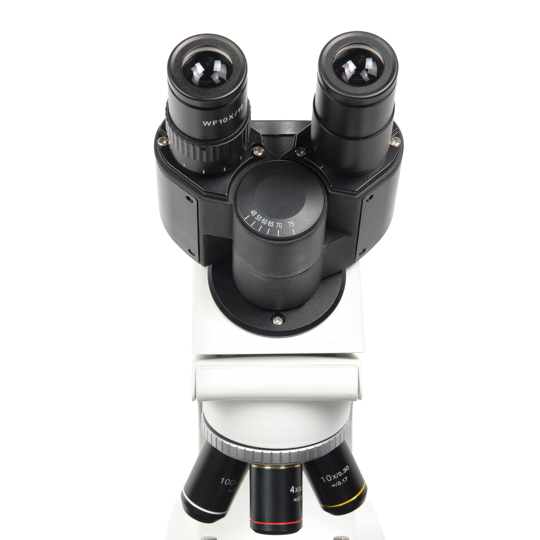 - Бинокулярная визуальная насадка микроскопа имеет поворотную конструкцию, что позволяет вести комфортное наблюдение и параллельно использовать окулярную камеру.