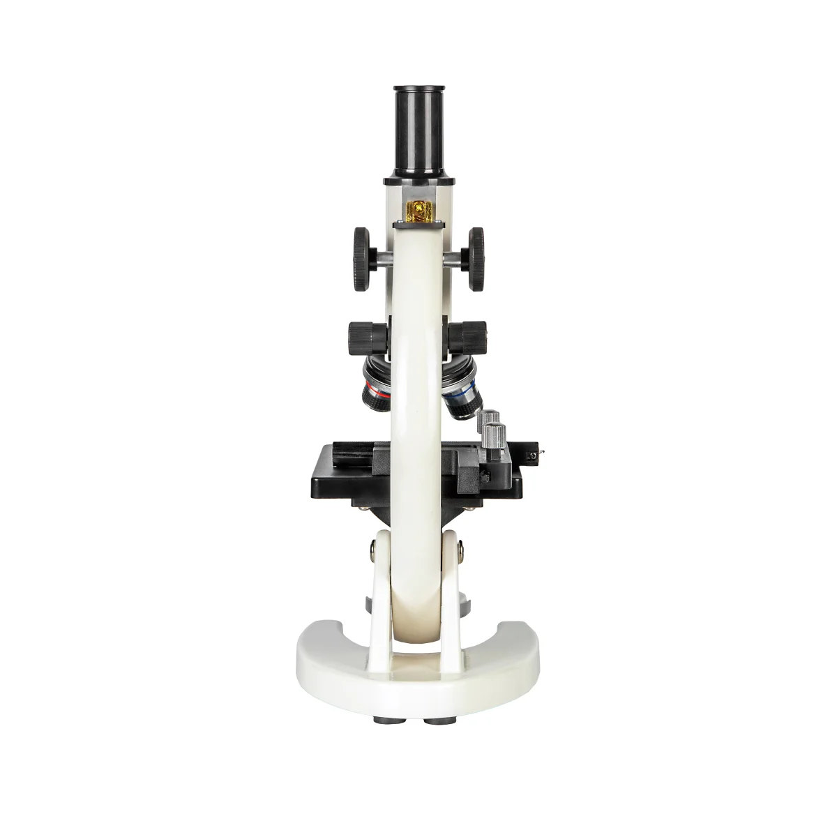 Штатив и основание микроскопа изготовлены из алюминиевого сплава, детали механизма фокусировки из латуни и стали. Использование металлов гарантирует прочность и стабильность конструкции, надежную защиту механизмов и оптики от ударов и вибраций, точность настроек и долгие годы безотказной работы.