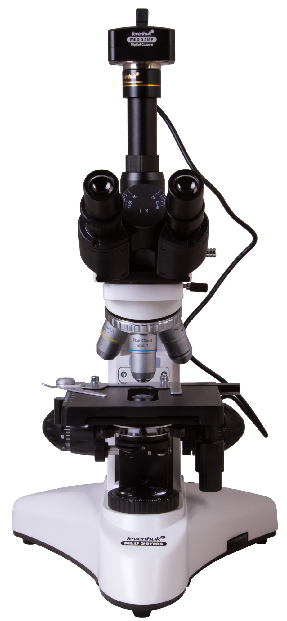 Levenhuk MED D25T – цифровой тринокулярный микроскоп (тринокулярный планахромат) с камерой 5,1 Мпикс, планахроматической оптикой и двумя конденсорами (светлопольным и темнопольным). Использовать его можно в разных областях науки: медицине, биохимии, микробиологии и других. Микроскоп станет отличным выбором для специалиста лаборатории, преподавателя вуза, сотрудника медицинского центра или исследовательского института.