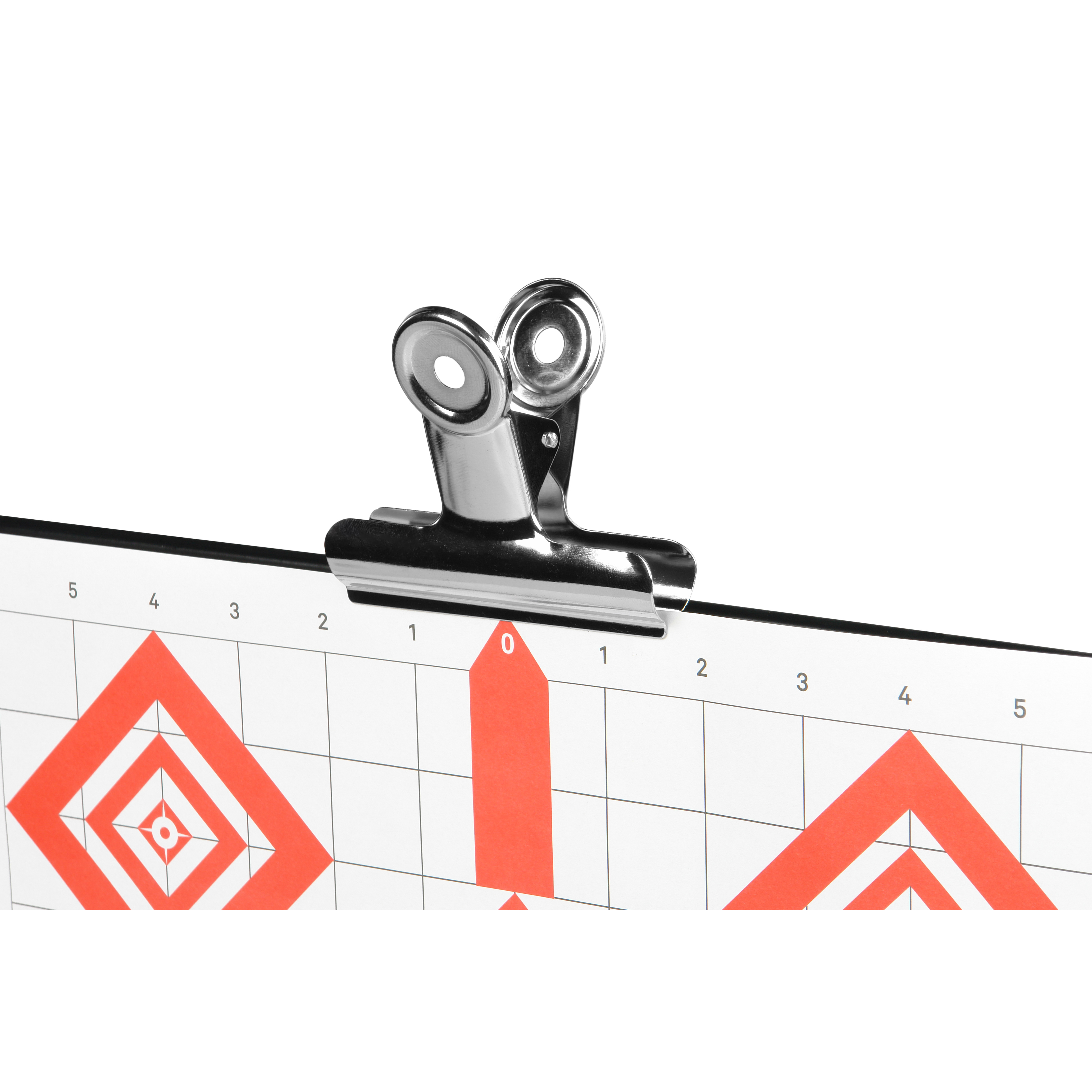 В набор входят 10 бумажных и 2 самоклеящиеся мишени для тренировки точности. Для удобного крепления бумажных мишеней предусмотрен металлический зажим.