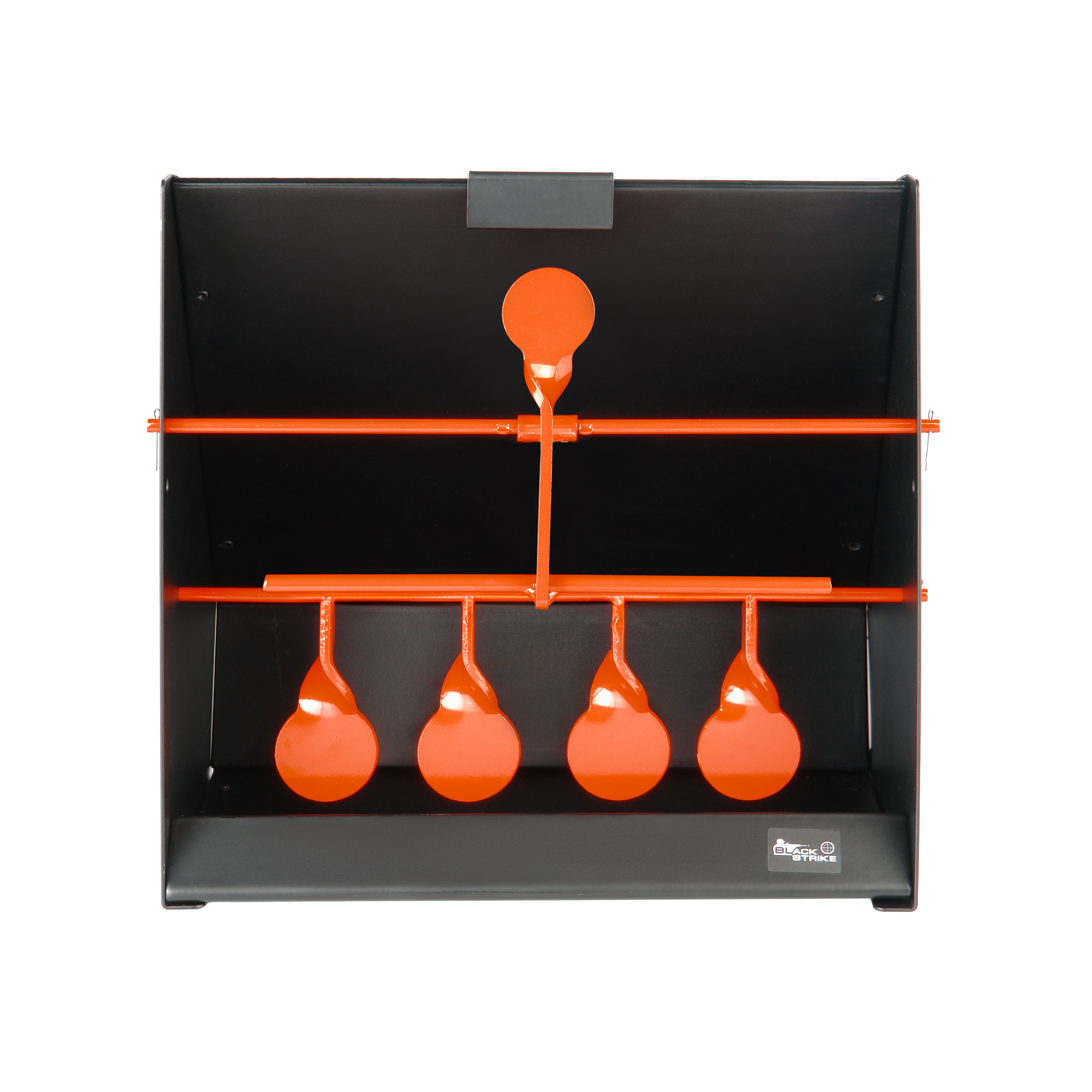 BLACK STRIKE AT3150 – прочная металлическая мишень для пневматического оружия с размером окна 30,5х27 см. Оснащена вращающейся стальной мишенью на 5 целей (4+1) и комплектом бумажных мишеней. Конструкция из утолщенной стали гарантирует долговечность, а глубокая форма с защитными скосами исключает рикошет.