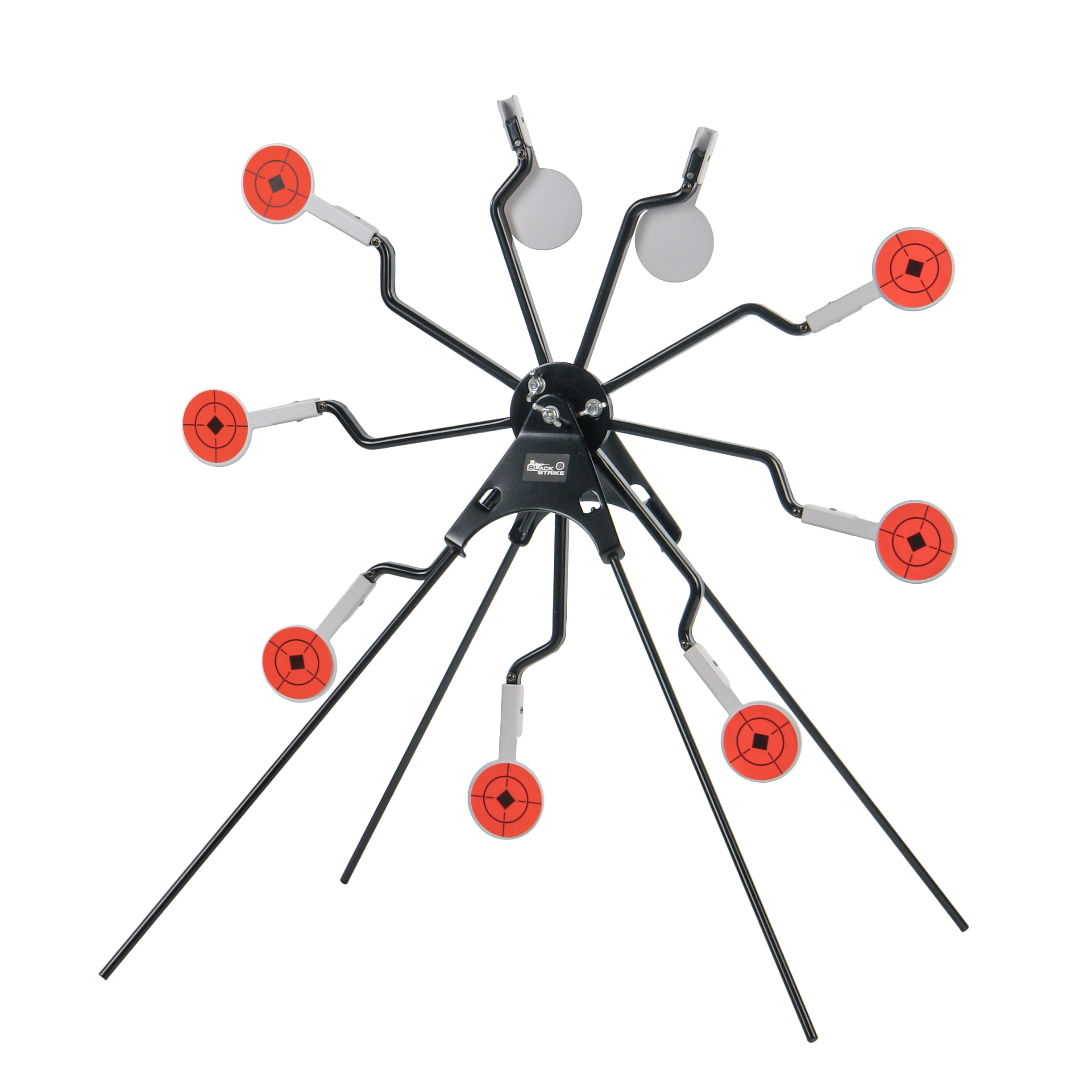 BLACK STRIKE AT48-9 – разборная вращающаяся мишень «звезда» на треноге с 9 стальными падающими мишенями для развлекательной и тренировочной стрельбы из пневматического оружия.