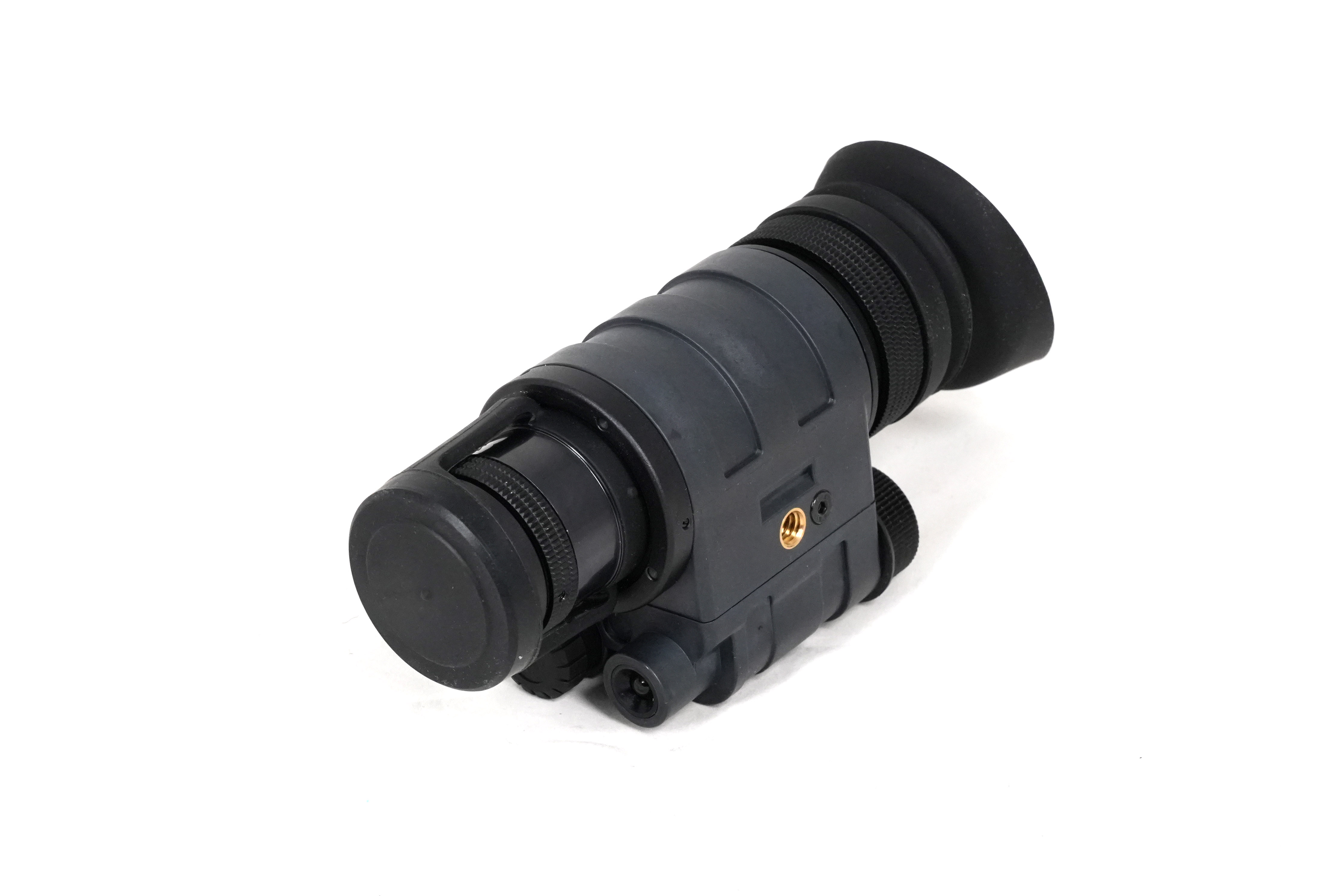 Ночной тактический монокуляр оснащен встроенным ИК-осветителем, работающим на длинах волн 850 нм. Это граница видимого спектра, при включении можно видеть небольшое свечение малинового цвета, которое уже не видно с дистанции 50 и более метров. Осветитель закрыт рассеивающей линзой помогающей снизить интенсивность таким образом, чтобы пользователям было комфортно вести наблюдения на близких дистанциях, например, знакомиться с документами, картами и пр.