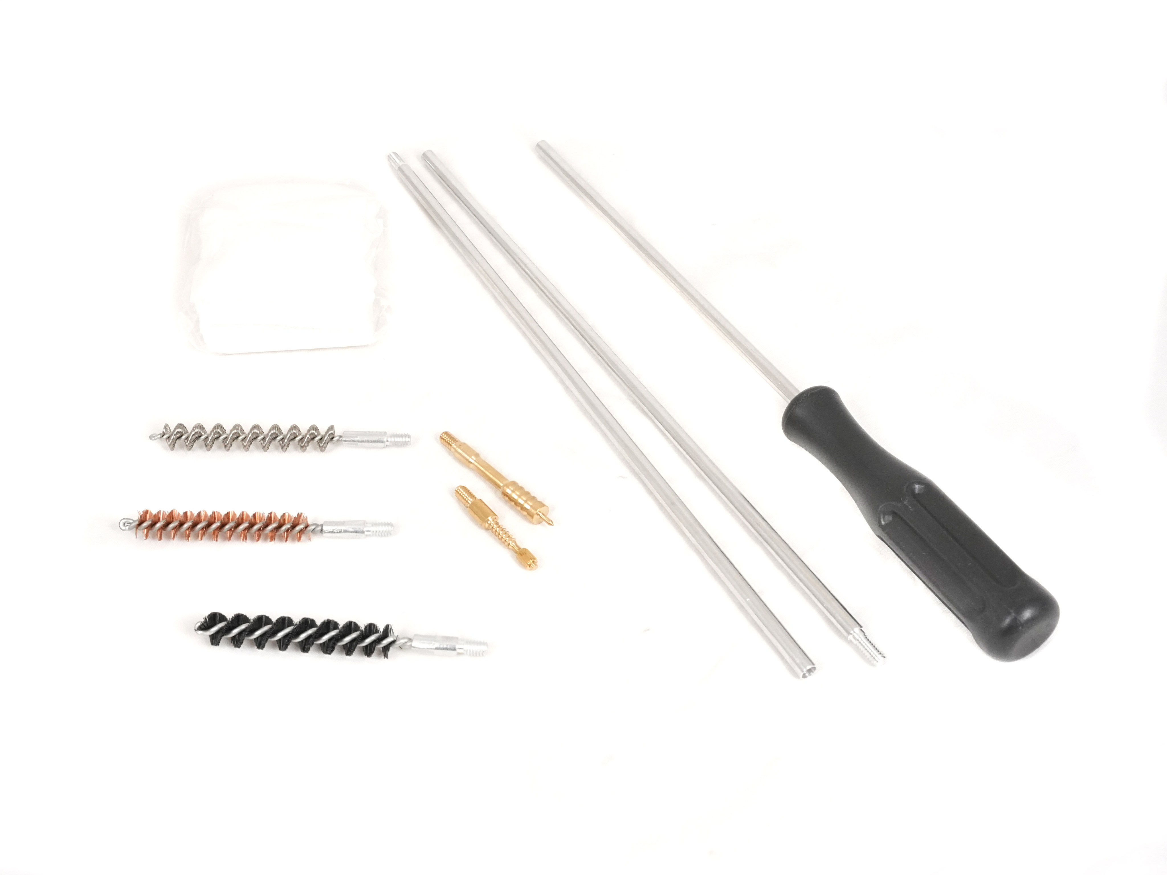 - Алюминиевый шомпол из 3 секций длиной 250 мм каждая, с прочной пластиковой ручкой, резьба 8/32 (внутренняя).