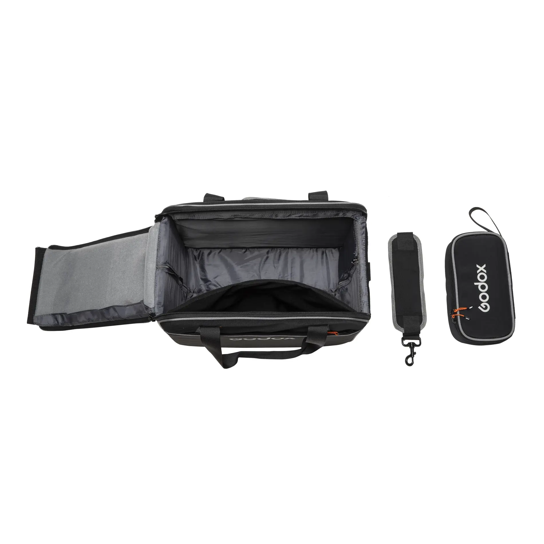 Набор сумок Godox CB56 предназначен для хранения и транспортировки вспышки Godox Witstro AD200 или Godox Witstro AD200Pro, импульсной головки Godox Witstro H200R, светодиодной головки Godox Witstro AD-L, кольцевой импульсной головки Godox R200, а также дополнительных аксессуаров, таких как рефлектор Godox RFT-25S, соты Godox R200-HC20, соты Godox R200-HC30, соты Godox R200-HC40, набор цветных фильтров Godox R200-CF и т.д.