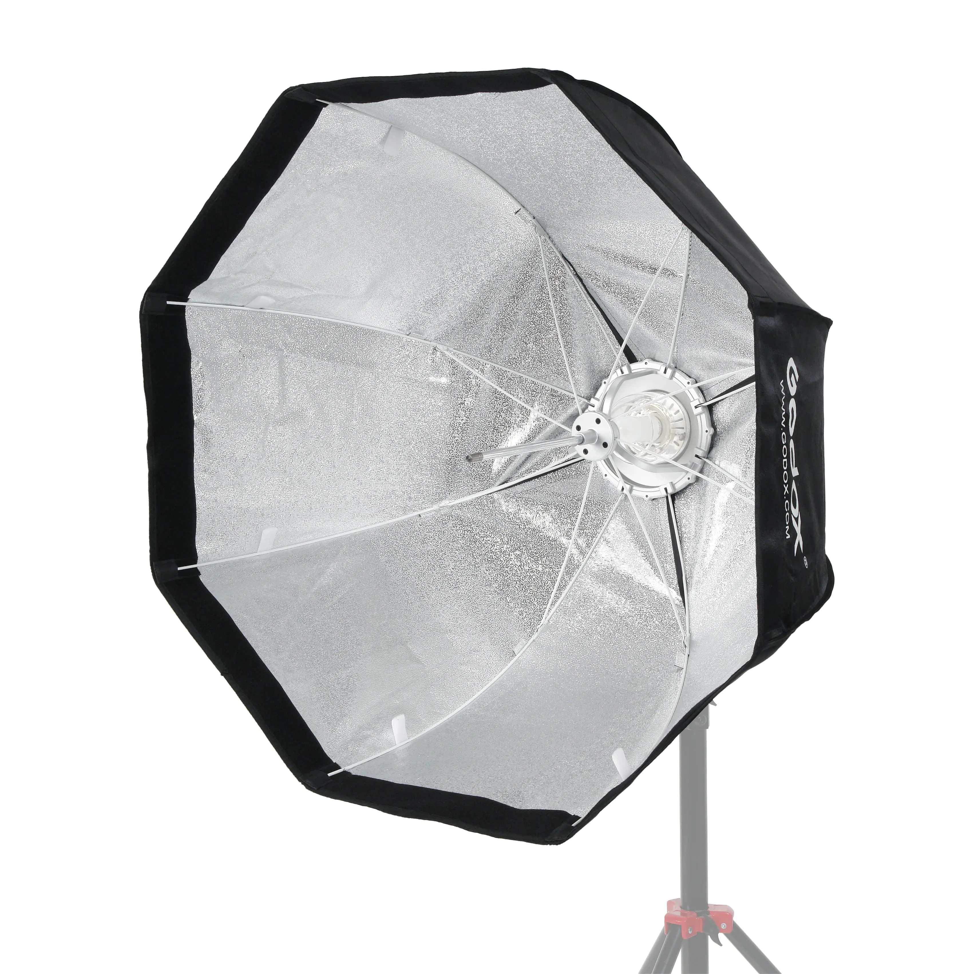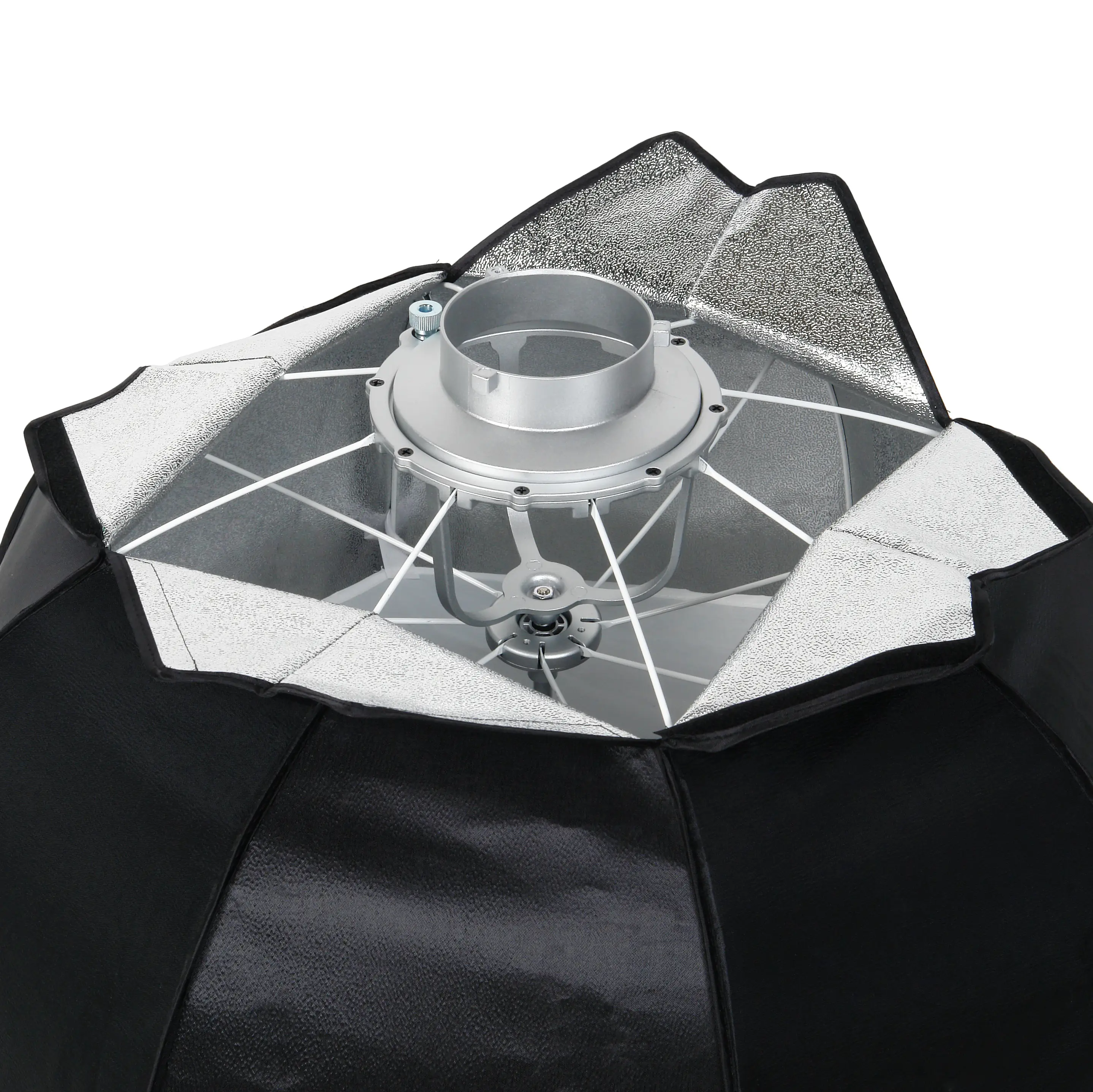Внутренняя серебристая фактурная поверхность обеспечивает равномерное распределение света внутри октобокса.