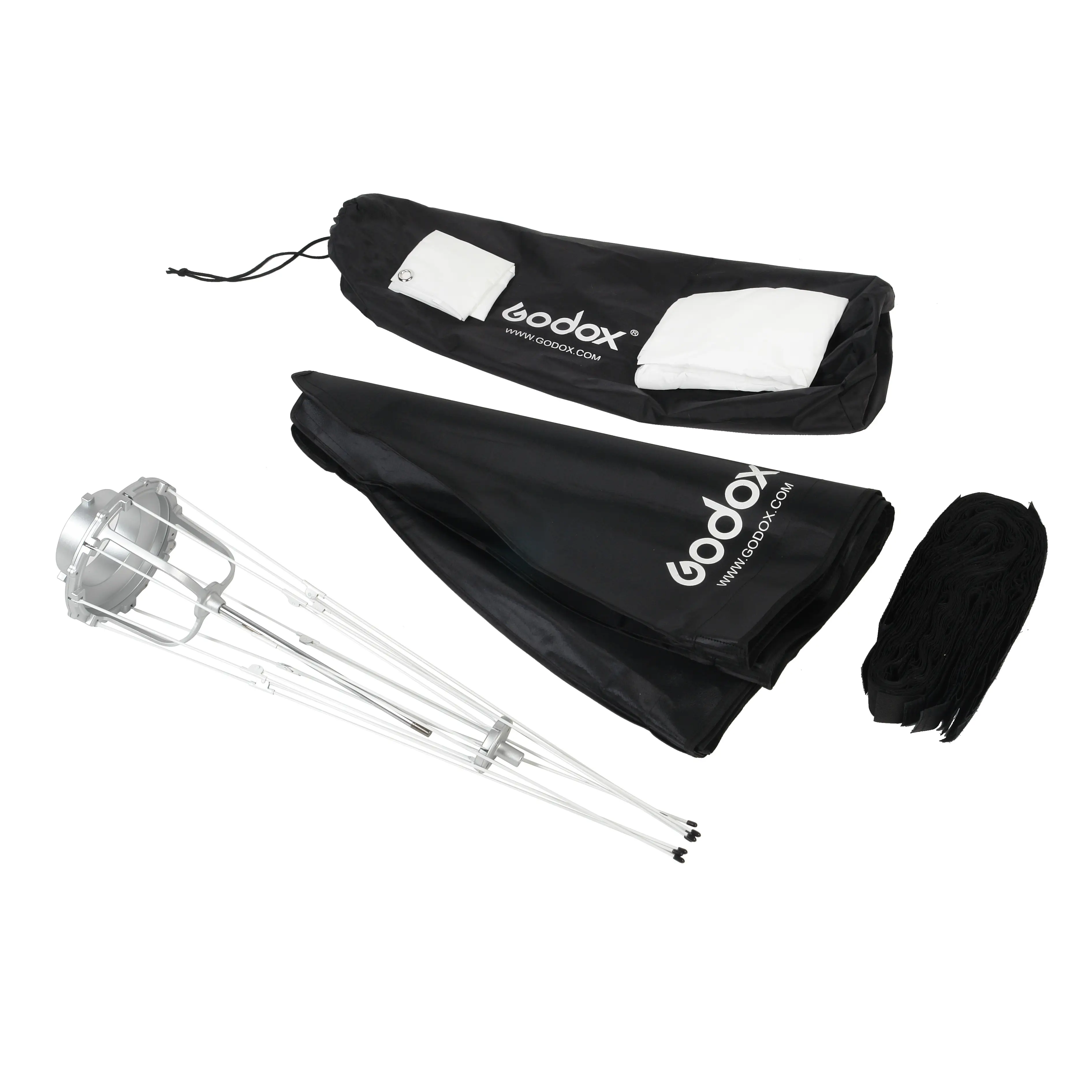 Октобокс Godox SB-UFW95 – быстроскладной 8-секционный софтбокс зонтичного типа диаметром 95 см с тканевыми сотами в комплекте. Октобокс предназначен для использования совместно со студийными вспышками и осветителями с байонетом (кольцо байонета сменное). Подходит для использования не только с источниками света Godox, но и осветителями других производителей.
