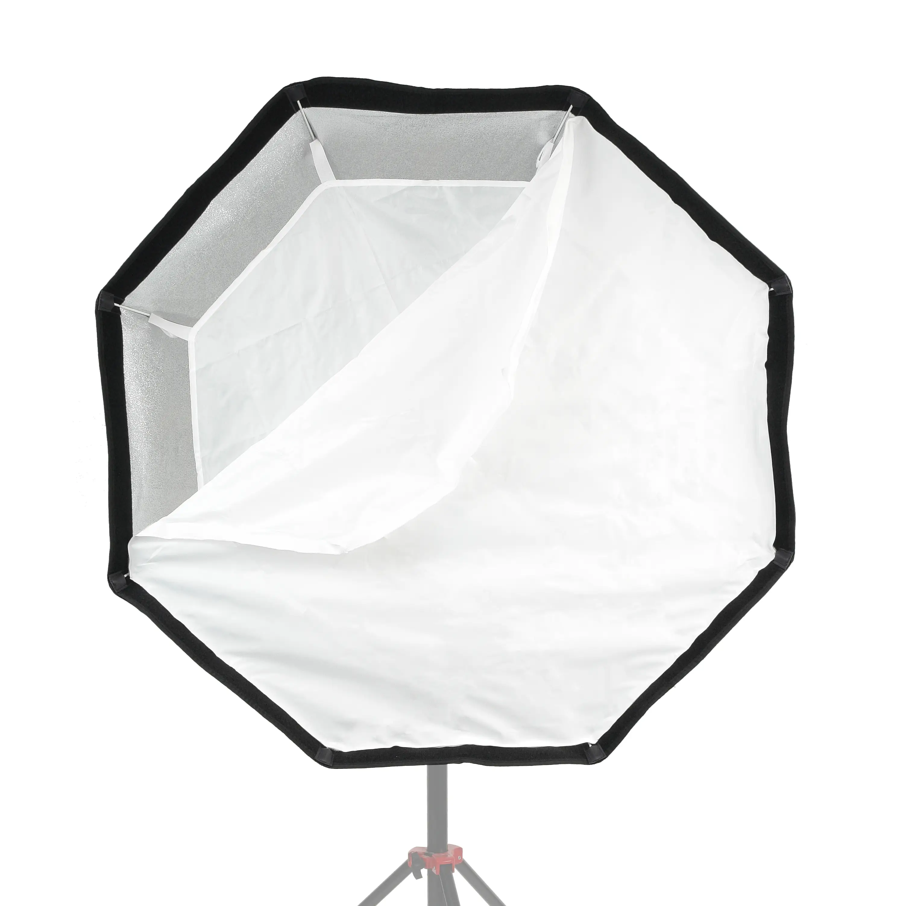 Внутренняя серебристая фактурная поверхность обеспечивает равномерное распределение света внутри октобокса.