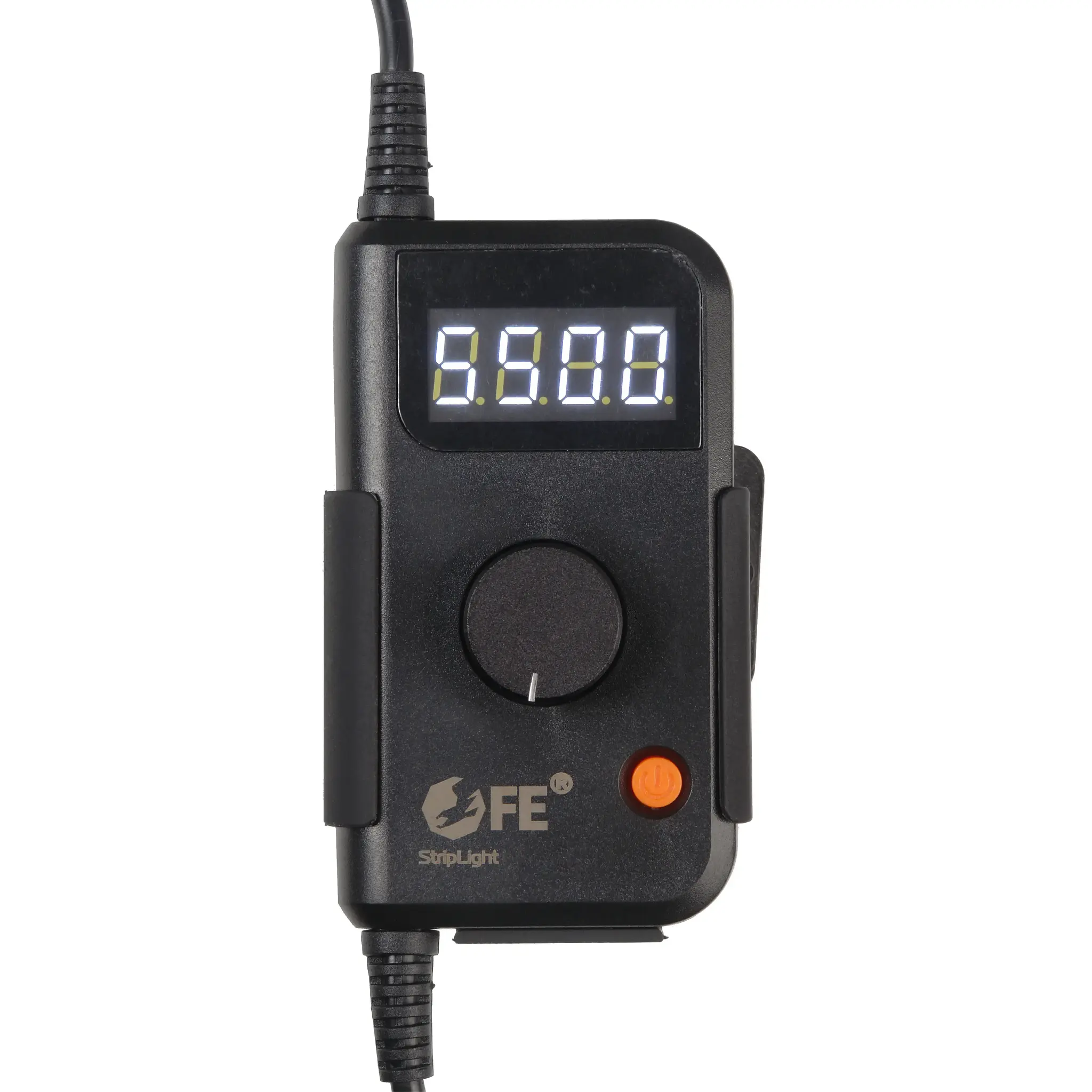 Мощность и цветовая температура осветителя регулируются с помощью контроллера – проводного пульта управления. Пульт расположен на длинном кабеле питания, присоединенном к сетевому адаптеру. На лицевой стороне контроллера находится диммер-кнопка для изменения мощности и цветовой температуры, кнопка включения/выключения питания и дисплей, отображающий текущие параметры.