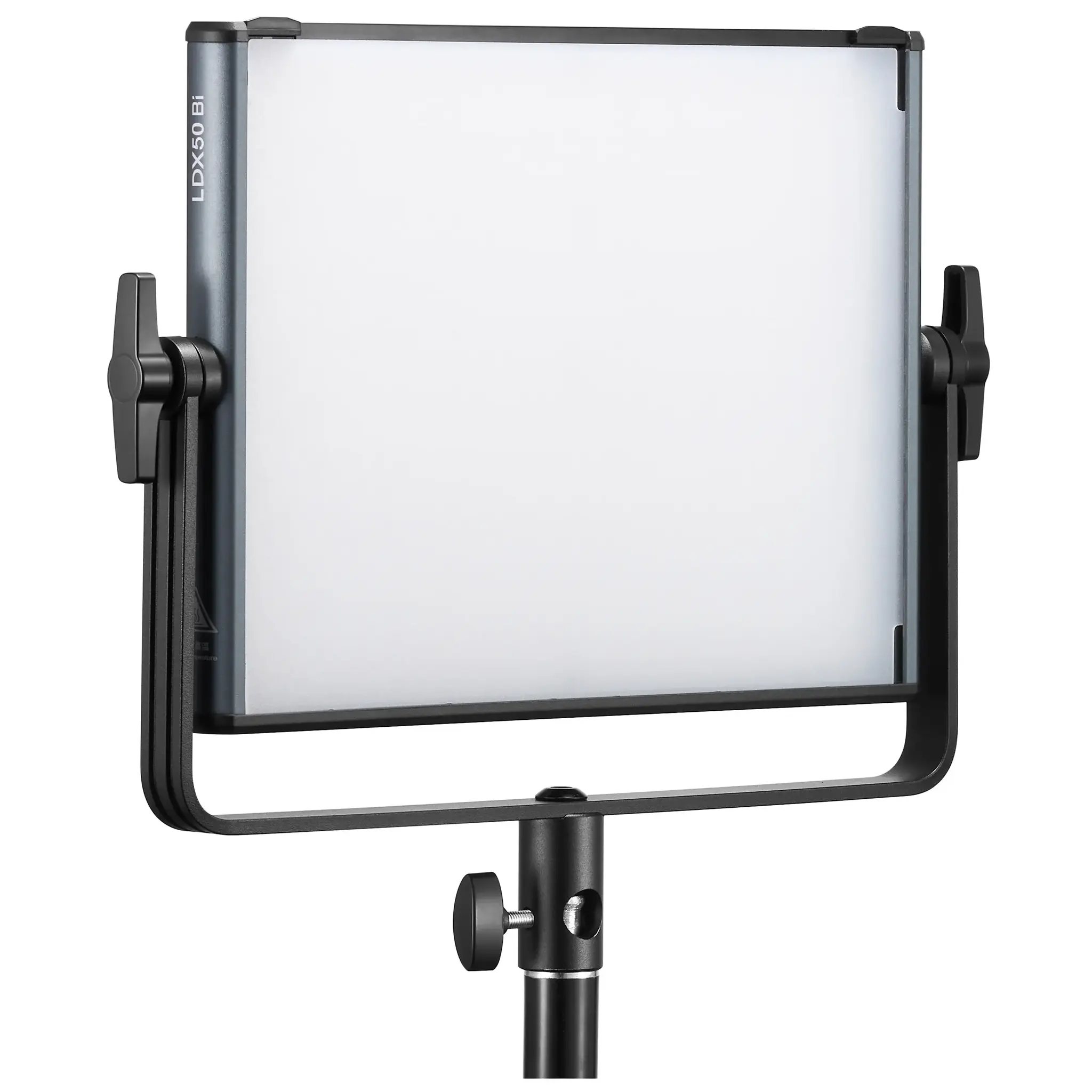 Godox LDX50Bi – биколорный светодиодный осветитель серии LDX, предназначенный для создания освещения сцены при съемке различного фото- и видеоконтента. LDX50Bi является универсальным решением для использования в помещении и на улице за счет компактных размеров, крупной панели рассеивателя (30х22,5 см) и различных возможностей питания. За счет быстросъемных рассеивателей возможно создание освещения разной контрастности и мягкости, что особенно важно в сфере видеопроизводства.