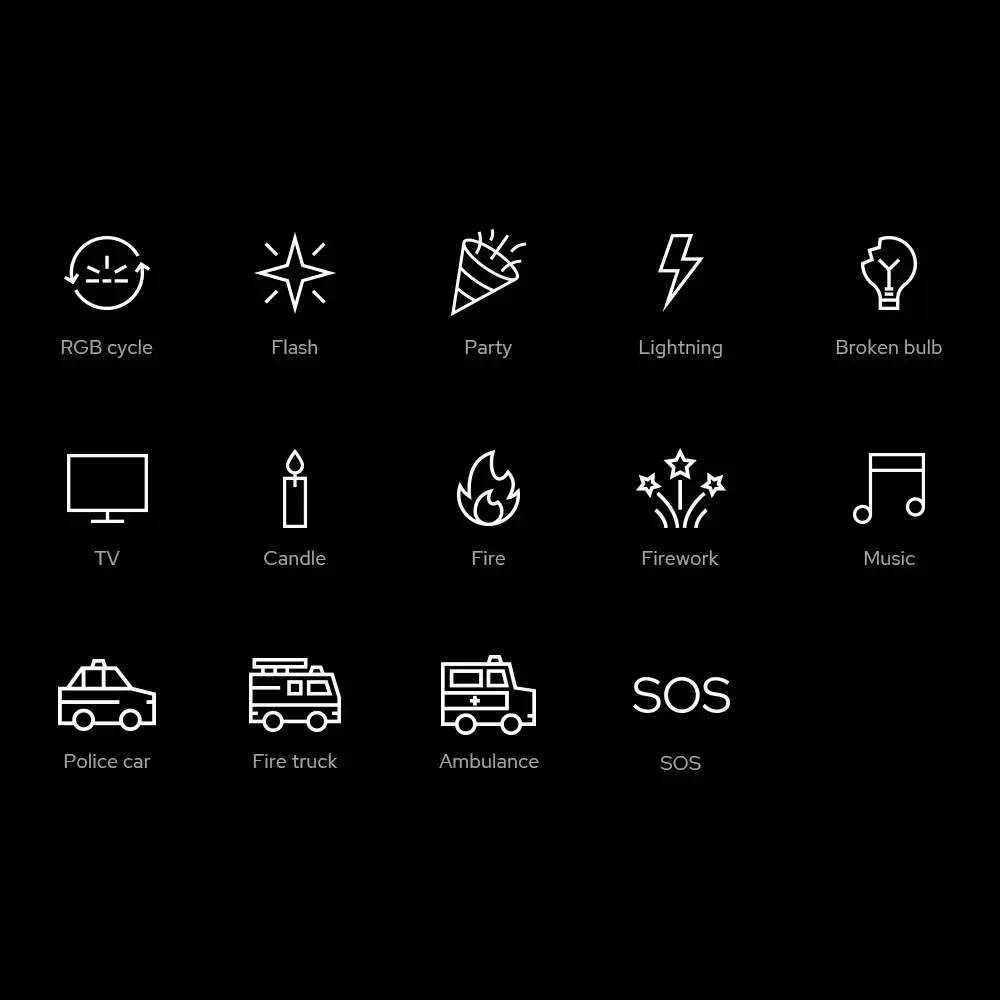 Встроенный в осветитель режим спецэффектов FX позволяет выполнять заданный динамический световой сценарий. 14 категорий световых эффектов включает 2-3 варианта, что в общей сложности позволяет имитировать 39 специальных эффектов(полицейская машина, мерцание свечи, дискотека, режим светомузыки в реальном времени и др.), чтобы разнообразить картинку или создать настроение в кадре.