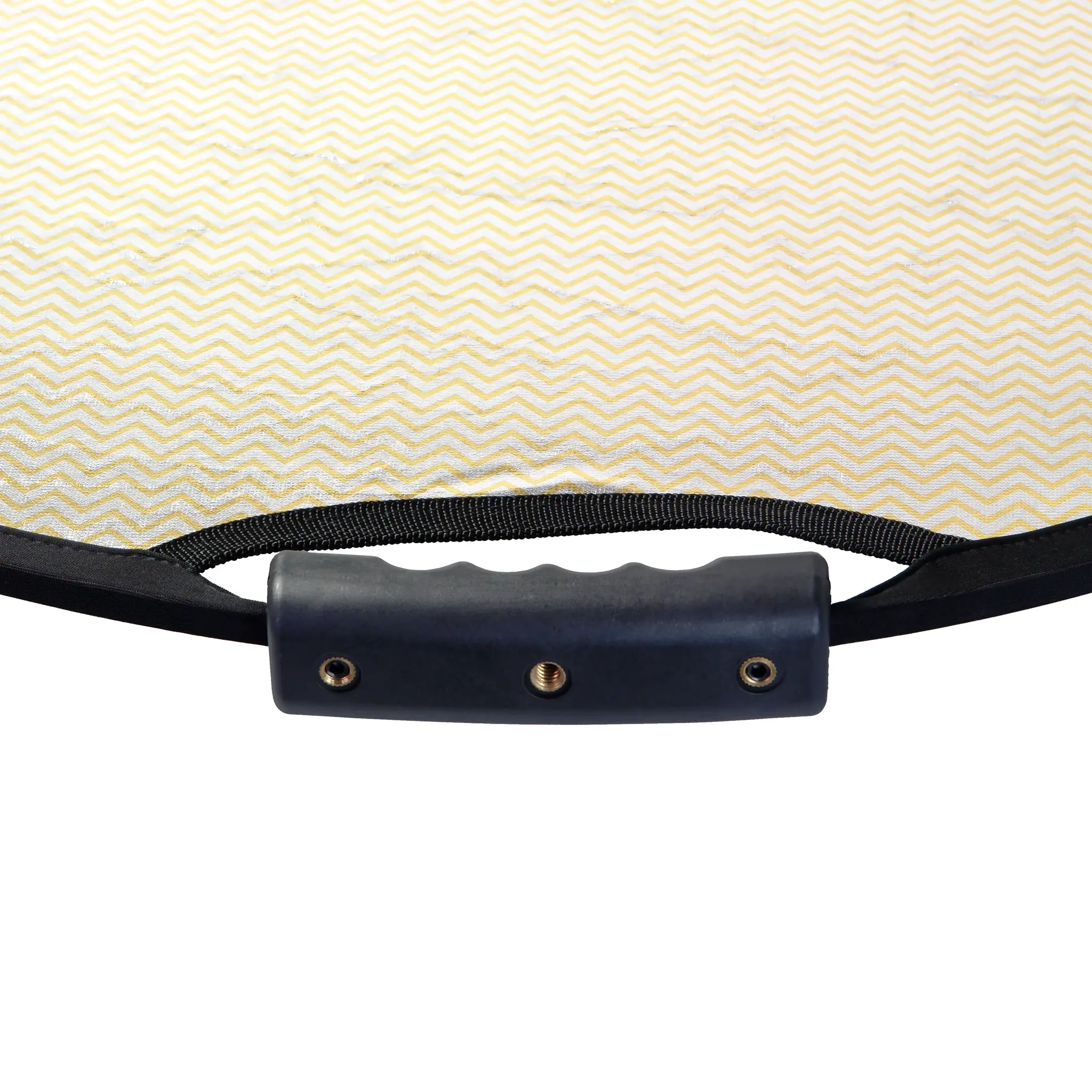 Стальной упругий каркас прошит по периметру капроновым карманом, диаметр отражателя в сложенном виде – 51 см. Две рукоятки, закрепленные на каркасе, оборудованы отверстиями с резьбой 1/4", что позволяет закрепить отражатель на штативах или любых опорах без использования специального держателя.