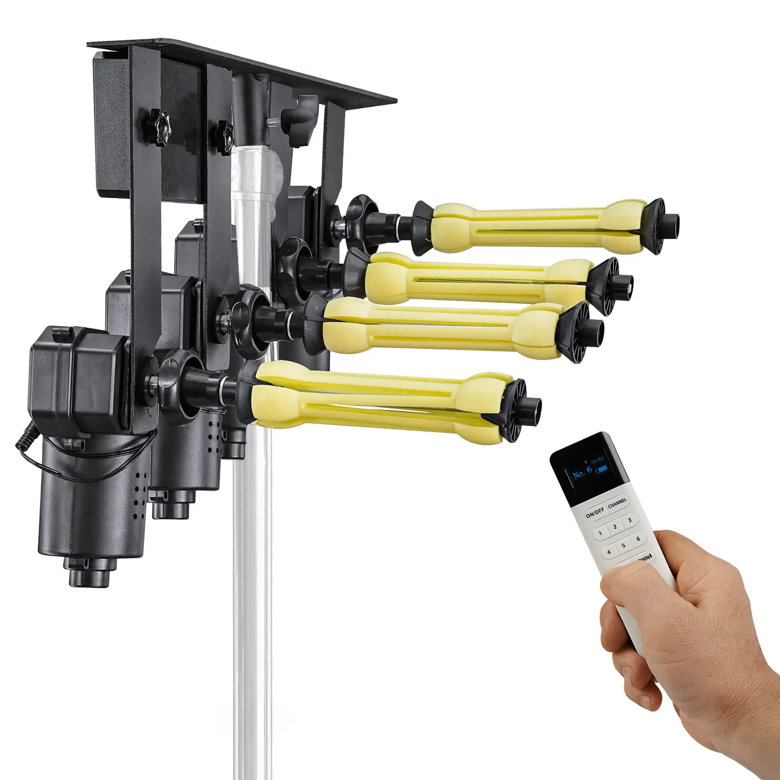 Универсальный пульт на 6 моторов может управлять выбранным подъемником на одном из 18 каналов или одновременно несколькими моторизованными фоновыми подъемниками.