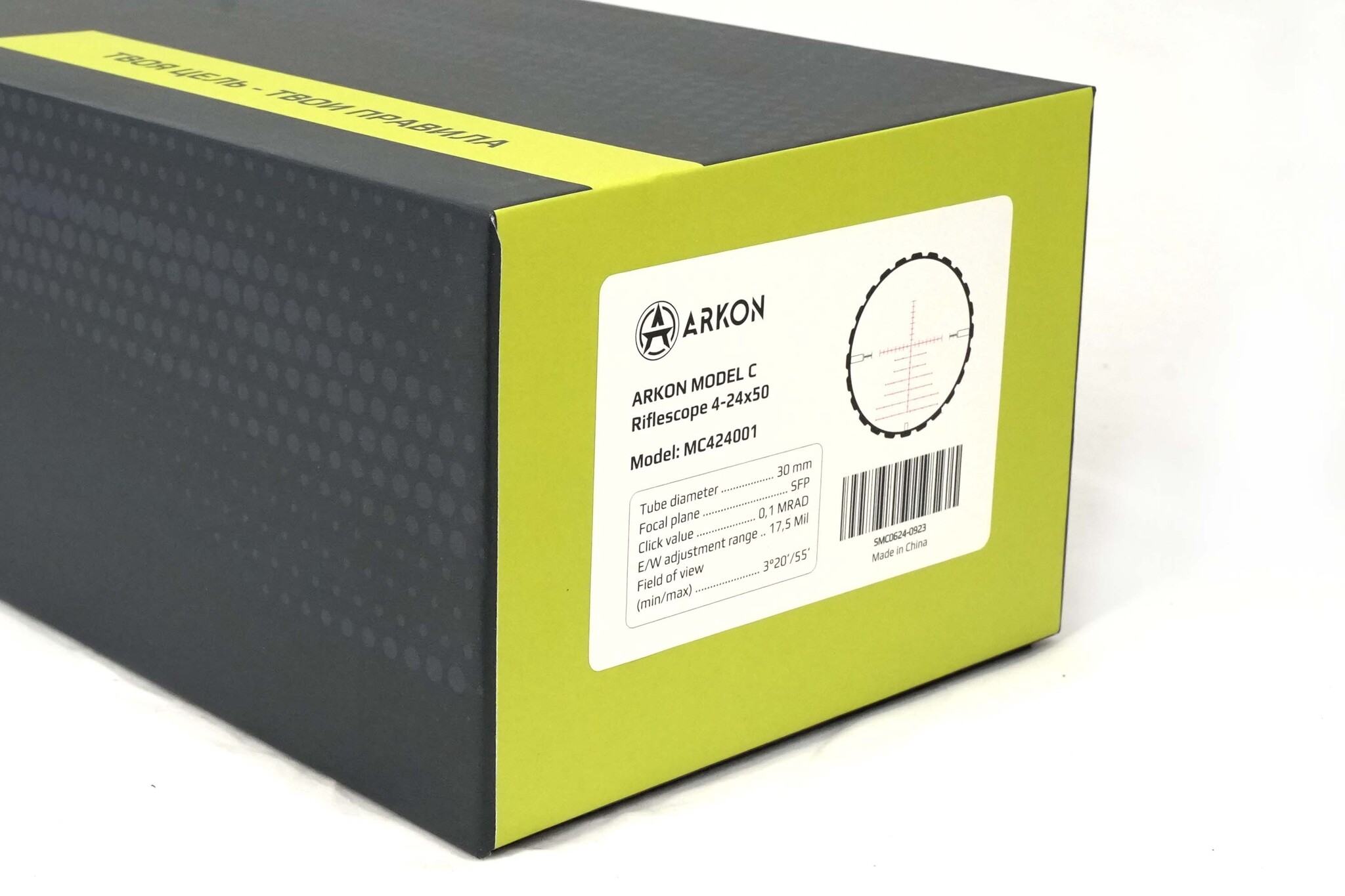 Корпус прицела Arkon Model C 4-24 изготовлен из цельной заготовки высокопрочного авиационного алюминия. Для защиты от запотевания прицел заполнен инертным газом. Анодированное покрытие предотвращает блики на солнце и защищает корпус от царапин и сколов. Прицел можно использовать в любых погодных условиях и в широком диапазоне температур. Испытания на ударные нагрузки с ускорением до 1200g подтвердили его готовность для использования на любом гражданском оружии.
