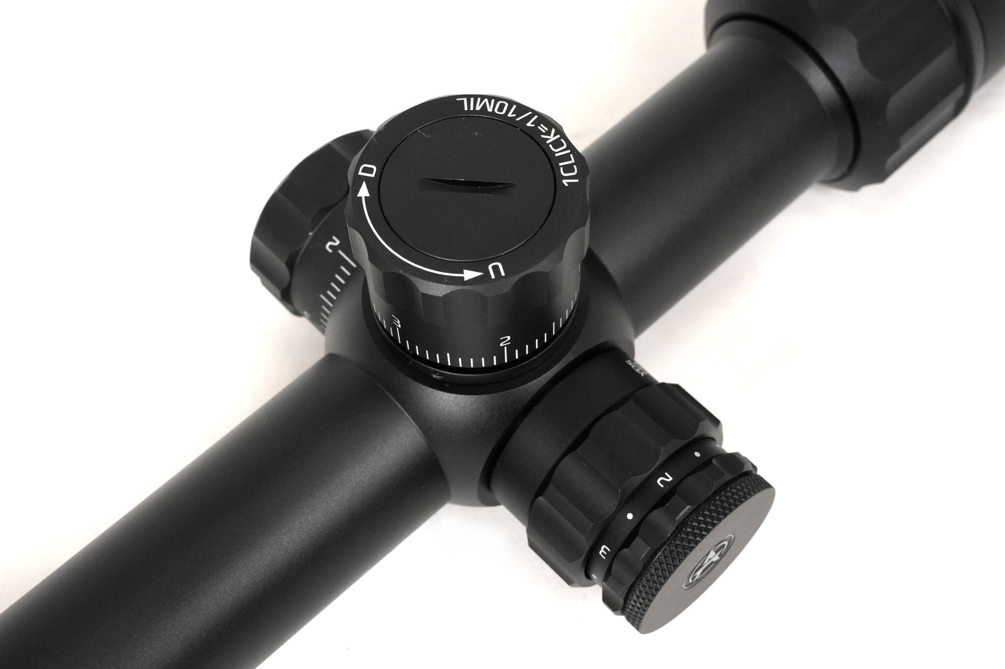 Прицел оснащен баллистической прицельной сеткой, которая выгравирована на стекле и расположена во второй фокальной плоскости. Такое положение не приводит к увеличению сетки при смене кратности. Многоуровневая подсветка сетки обеспечит ее хорошую видимость при любом освещении. Блок управления интенсивностью подсветки расположен с левой стороны корпуса. . Барабаны ввода поправок имеют четкие клики и идеальную повторяемость. Цена клика составляет 0,1 MRAD, а диапазон хода прицельной сетки по горизонтали и вертикали равен 17,5 MIL.