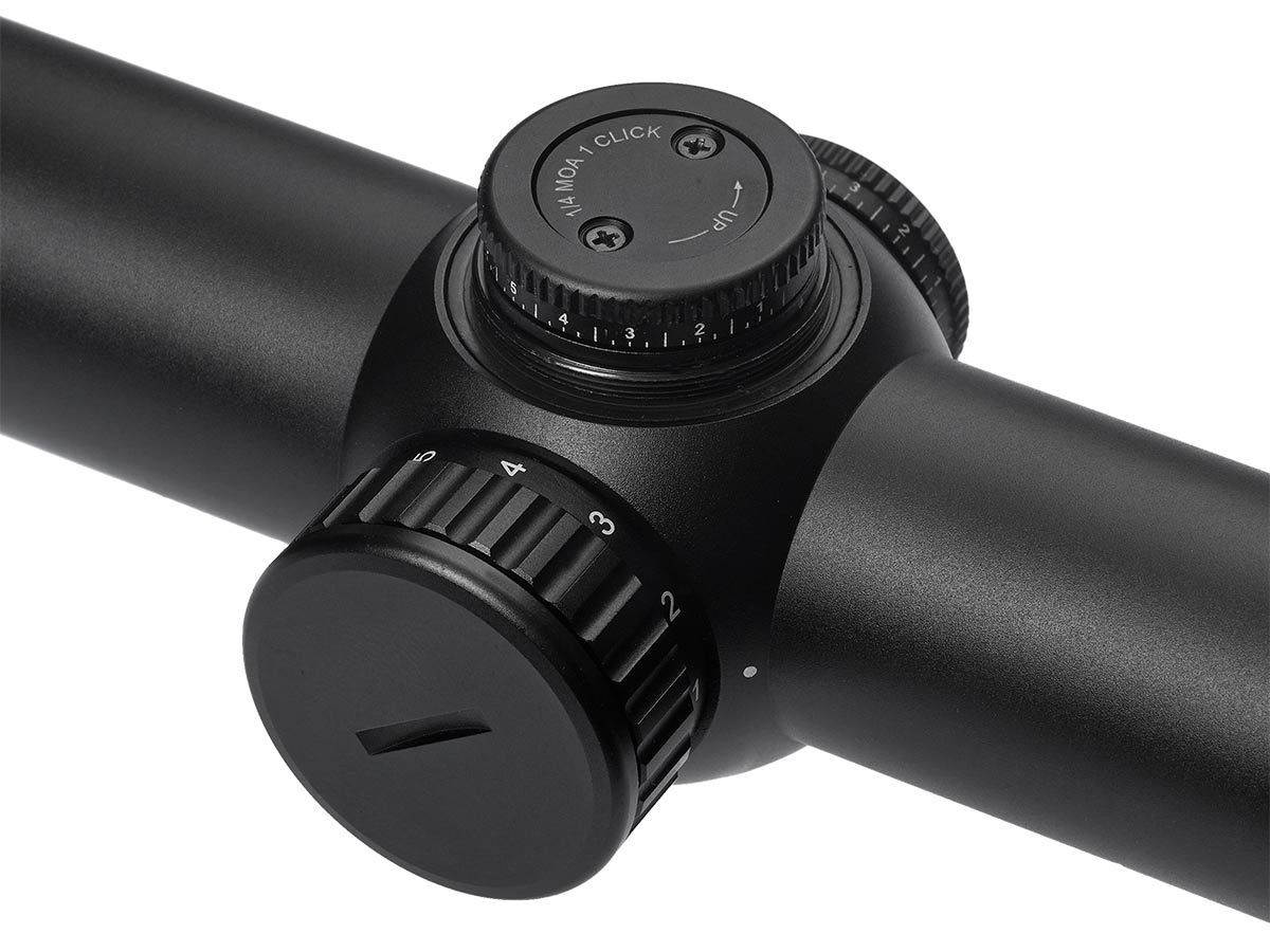 Барабанчики ввода поправок низкие и закрытые. Блок подсветки расположен в средней части прицела и работает от батарейки типа CR2032. Подсветка имеет 11 уровней, что позволяет настроить её под любые условия. Подсвечивается полностью всё центральное перекрестие.