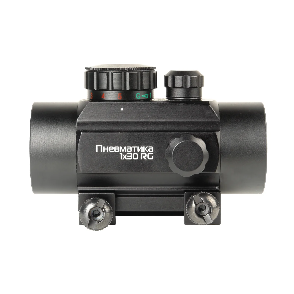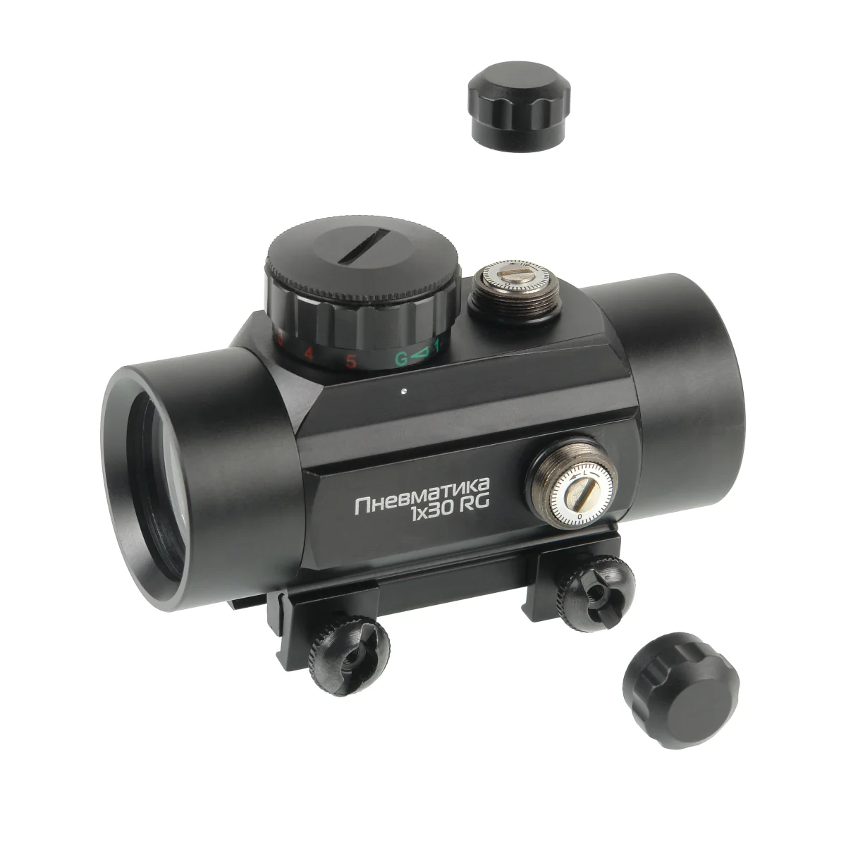 Veber Пневматика 1x30 RG – коллиматорный прицел закрытого типа с прицельной маркой в виде точки размером 4 MOA (регулируемая подсветка красного или зеленого цвета).
