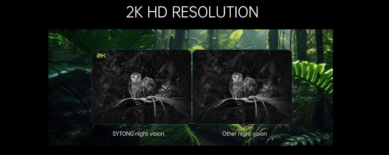 Максимальная чёткость и детализация картинки, особенно в темноте. Sytong HT-70 LRF отличается 2K HD матрицей, контрастным AMOLED экраном 768P и улучшенной (по сравнению с HT-60) обработкой изображения. За счёт чего цветопередача, контрастность, детализация у прибора выходит лучше, чем у аналогичных «ночников» с сенсором CMOS 1280×720, плюс присутствует реальная возможность в пассивном режиме охотиться в глубоких сумерках. Для наблюдения есть 2 режима и 3 палитры: «День» используется при нормальной и пониженной освещённости, даёт 100% цветную реалистичную картинку, «Ночь», соответственно, подходит для ночного времени и полной темноты, картинку выводит либо чёрно-белую, либо зелёную.