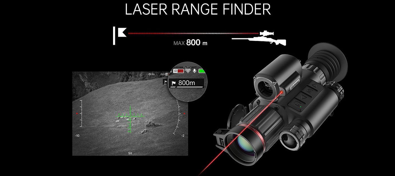 - Лазерный дальномер (800 м). Автобаллистика. 10 профилей выверки.