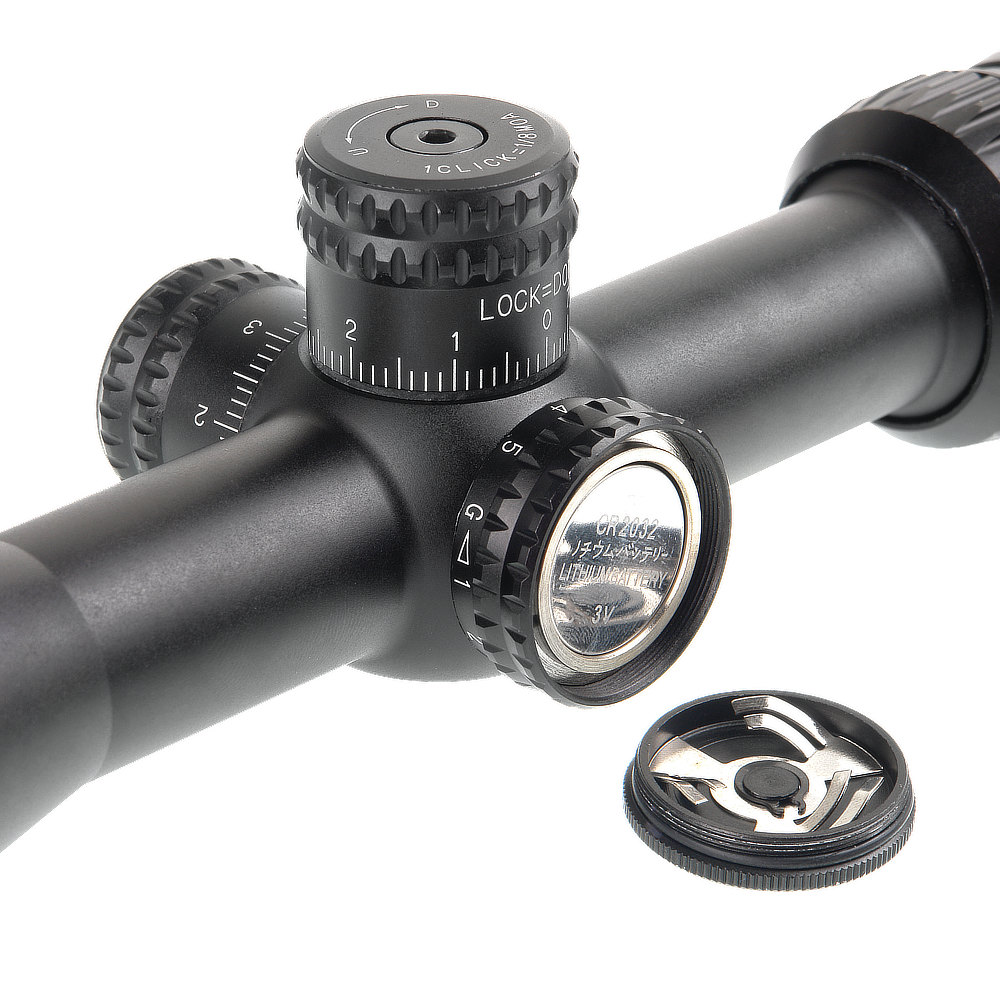 Окуляр с тонким краем комфортен для стрелка: он видит изображение в прицеле без лишних деталей, так как край корпуса вокруг линзы почти незаметен. Для подстройки под индивидуальные особенности зрения служит кольцо диоптрийной настройки на окуляре, которое вращается плавно, с дозированным усилием. Рядом на окуляре расположено кольцо для изменения кратности прицела.