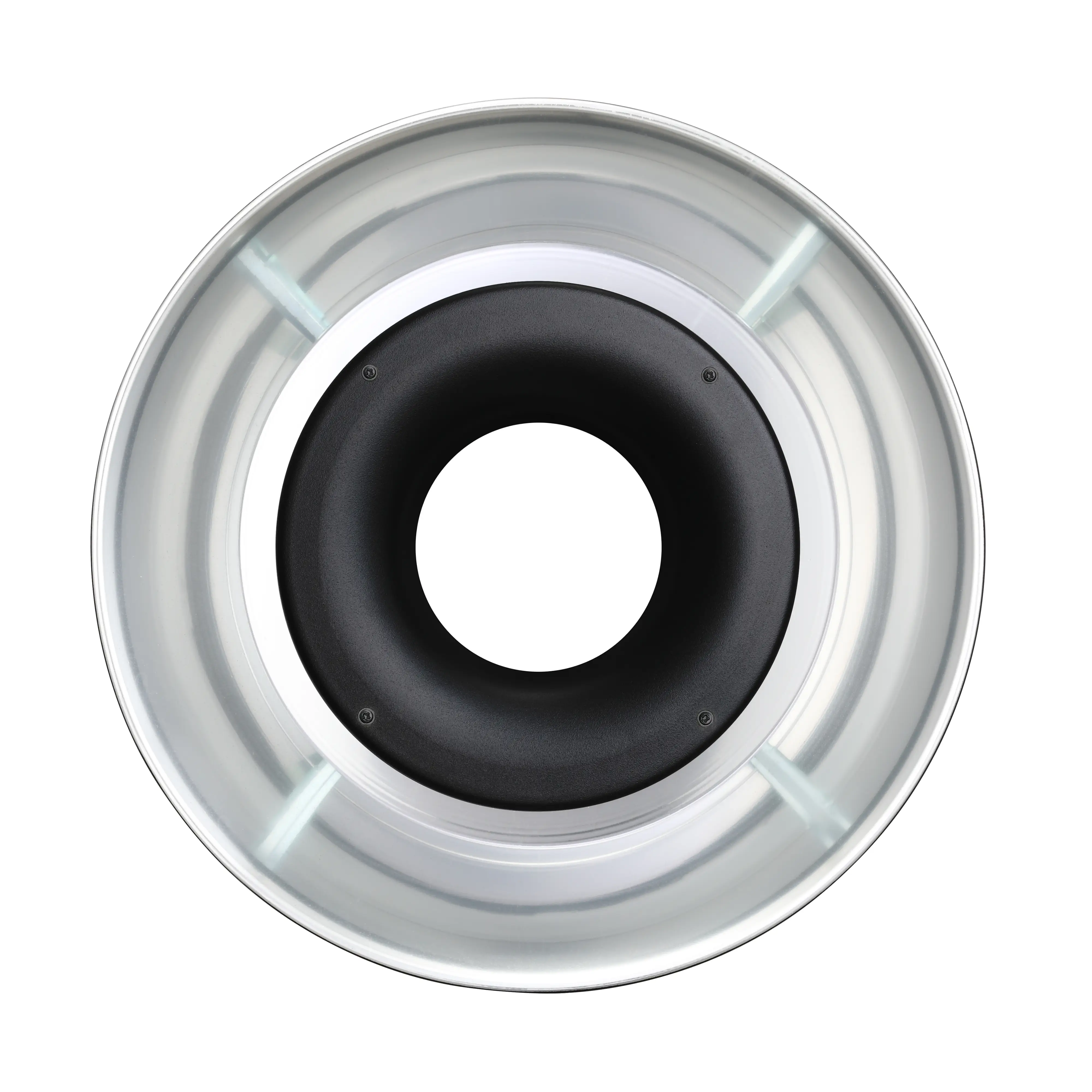 Рефлектор Godox RFT21S (серебро) разработан специально для установки на импульсной кольцевой голове Godox Wistro R1200 для генераторной вспышки AD1200. Модификатор света представляет собой портретную тарелку с серебристым отражающим покрытием.