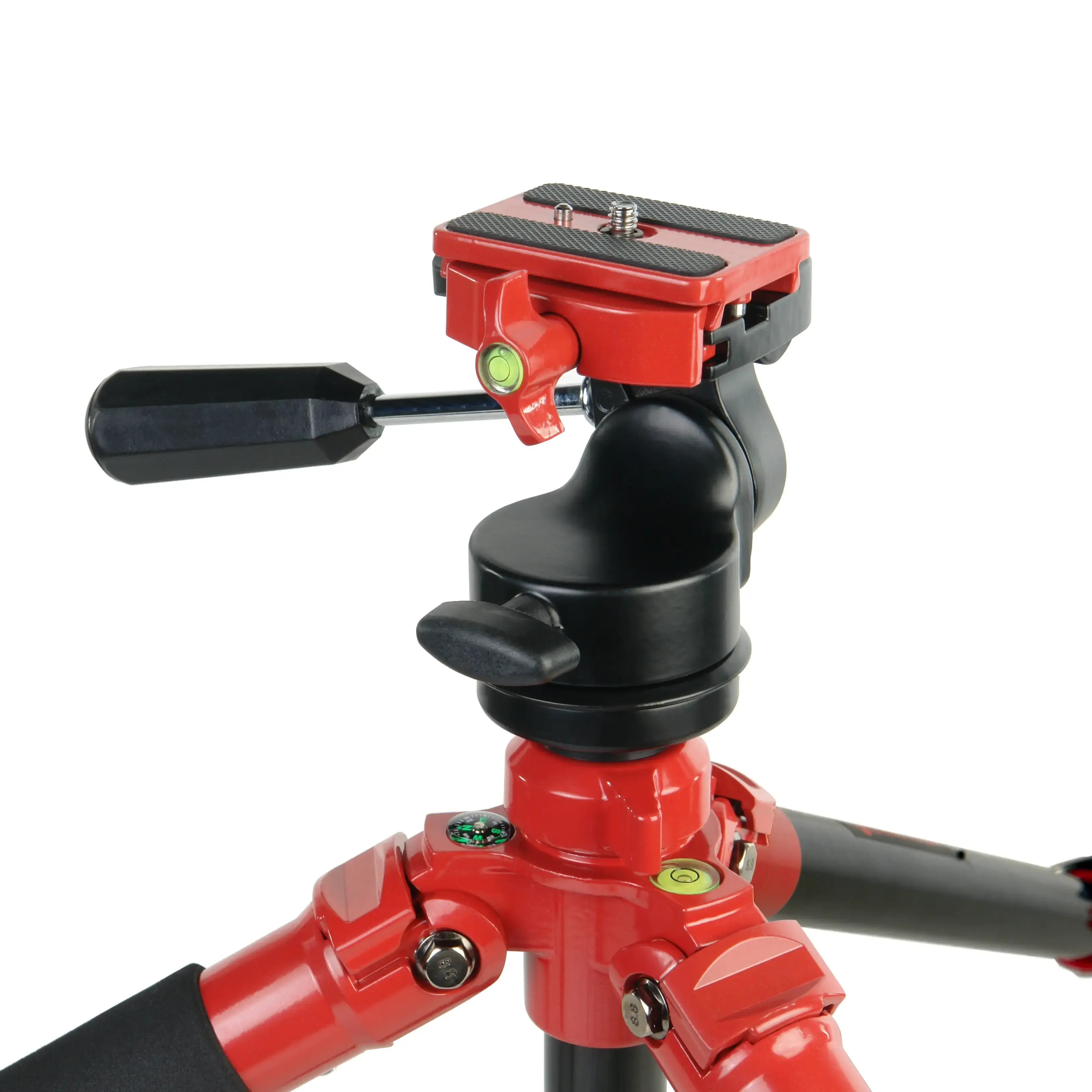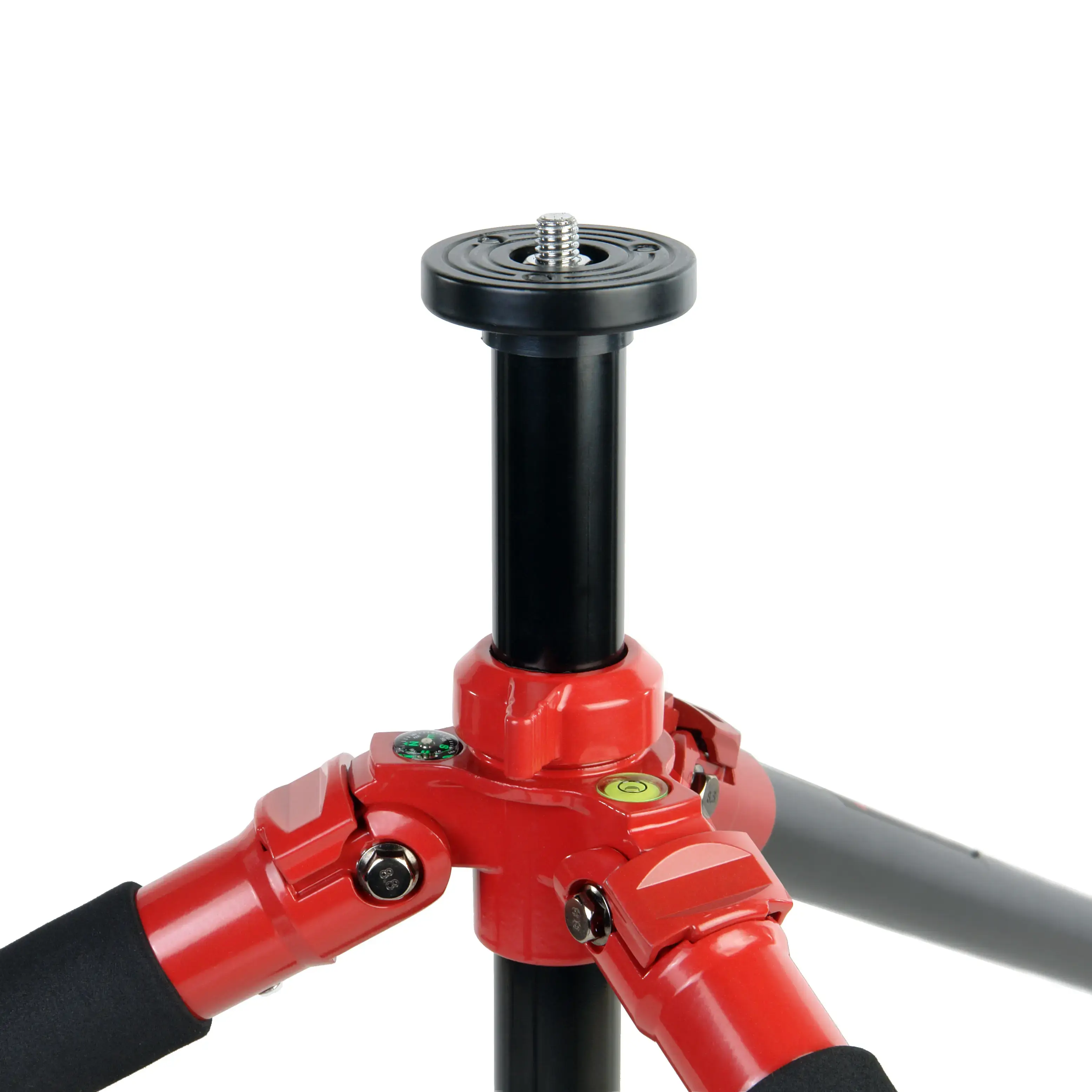 В верхней части треноги расположены компас и пузырьковый уровень для более точного позиционирования камеры на штативе при съемке в сложной местности с неровной поверхностью, например в лесу или в горах. Еще два пузырьковых уровня находятся на голове штатива и на винте фиксации быстросъёмной площадки.