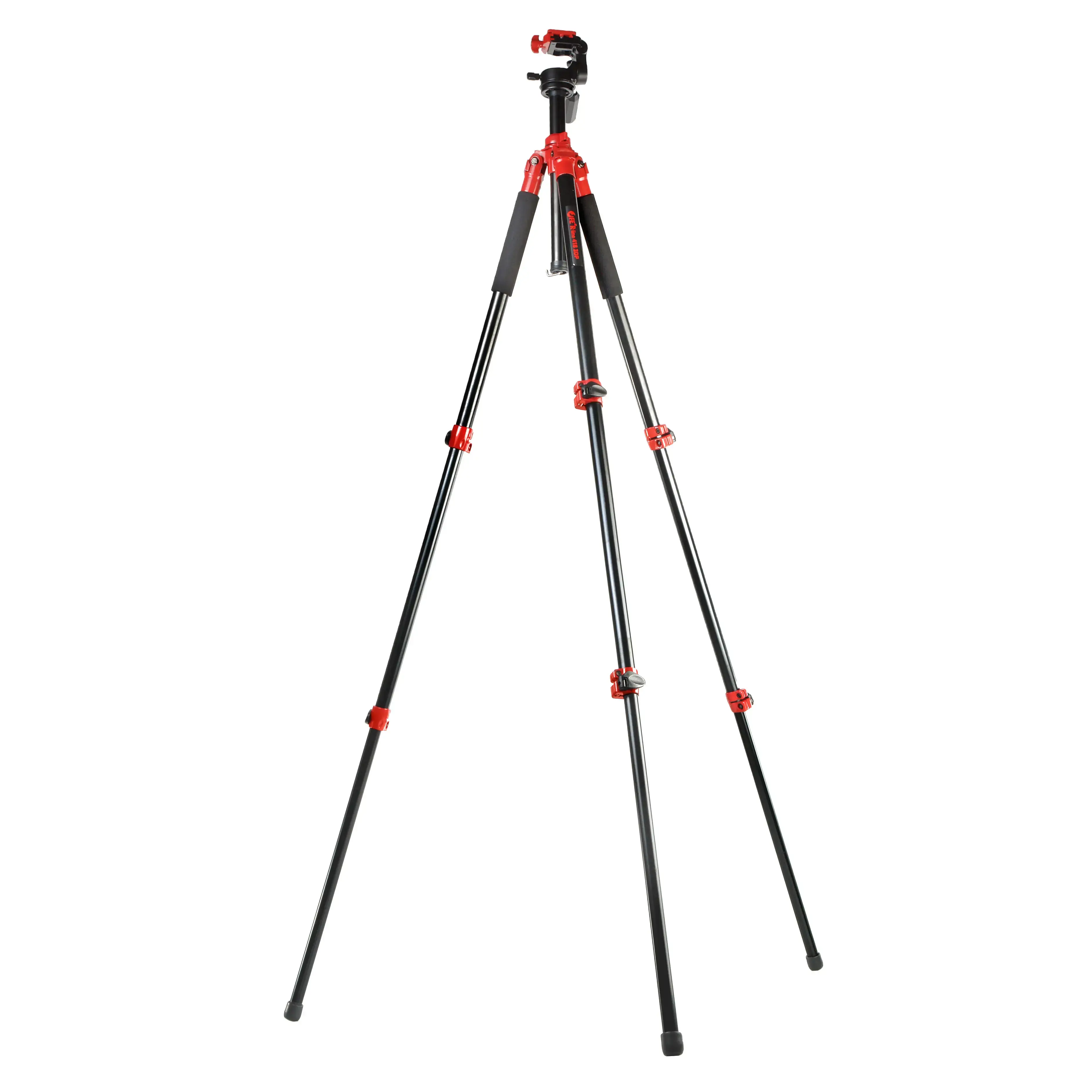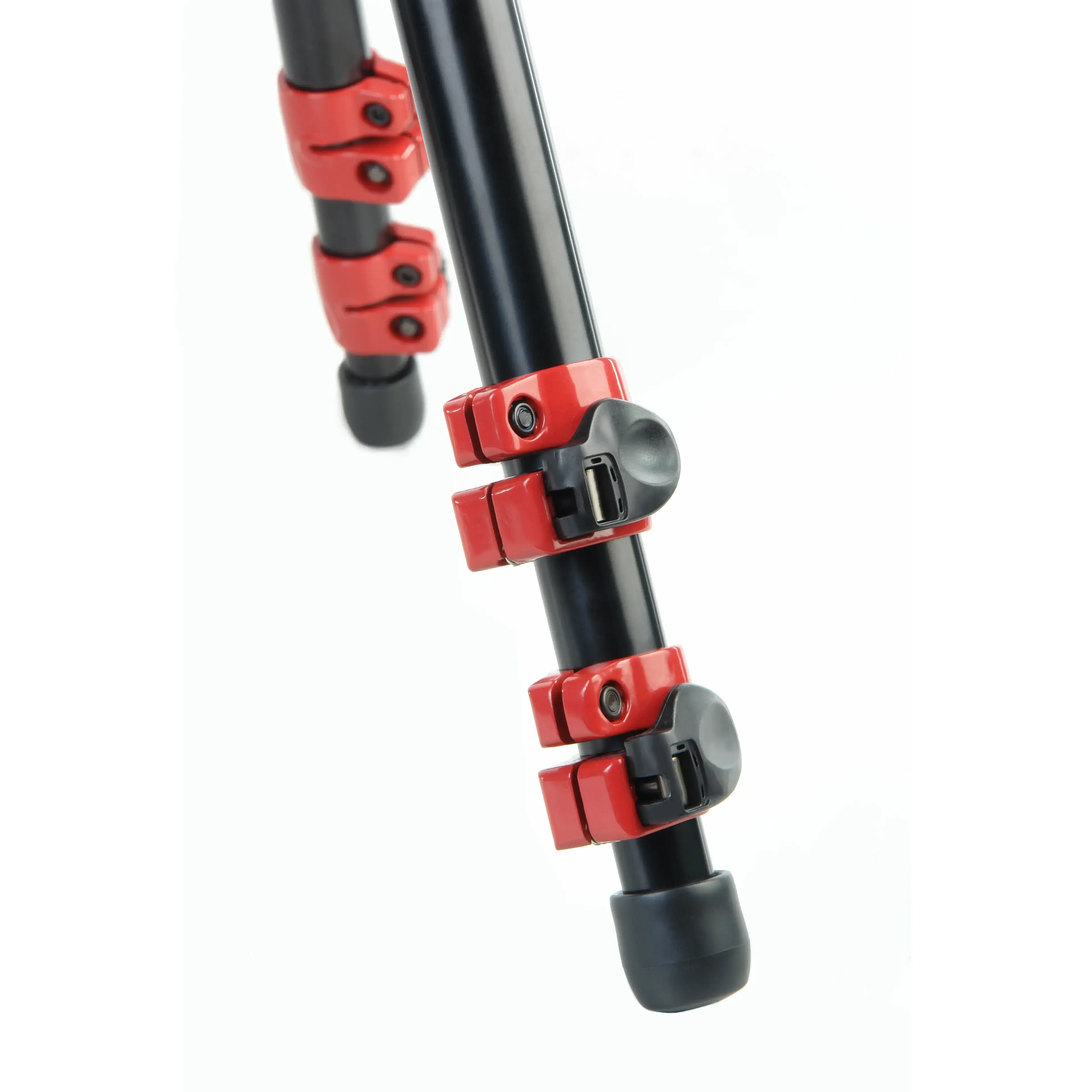 Три секции штатива с круглым профилем ног диаметром 21/25/29 мм соединяются клипсовыми зажимами. Секции имеют плавный ход регулировки без люфта, штатив легко фиксируется в одном из трех возможных положений ног на высоту от 43 до 175 см (с выдвинутой колонной).