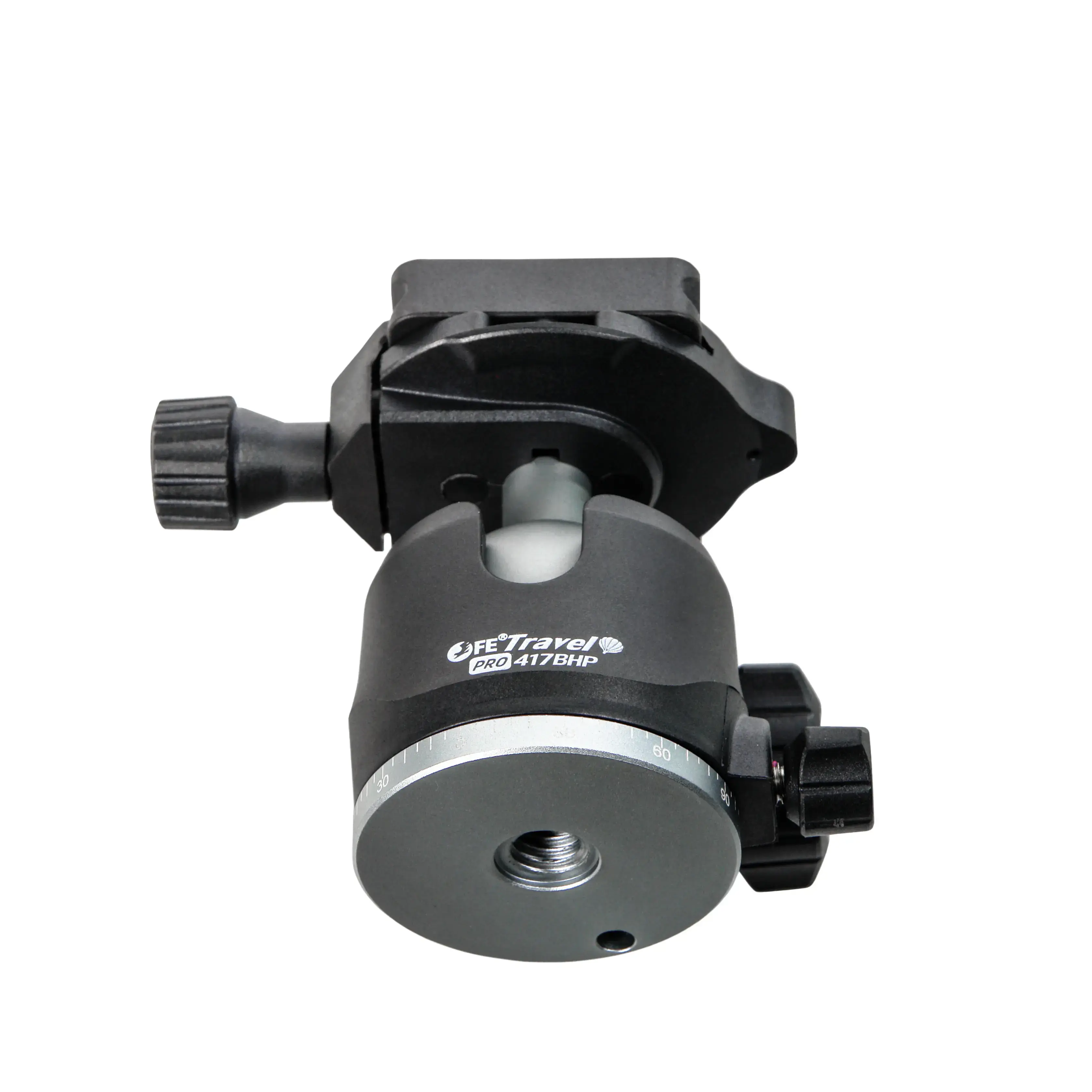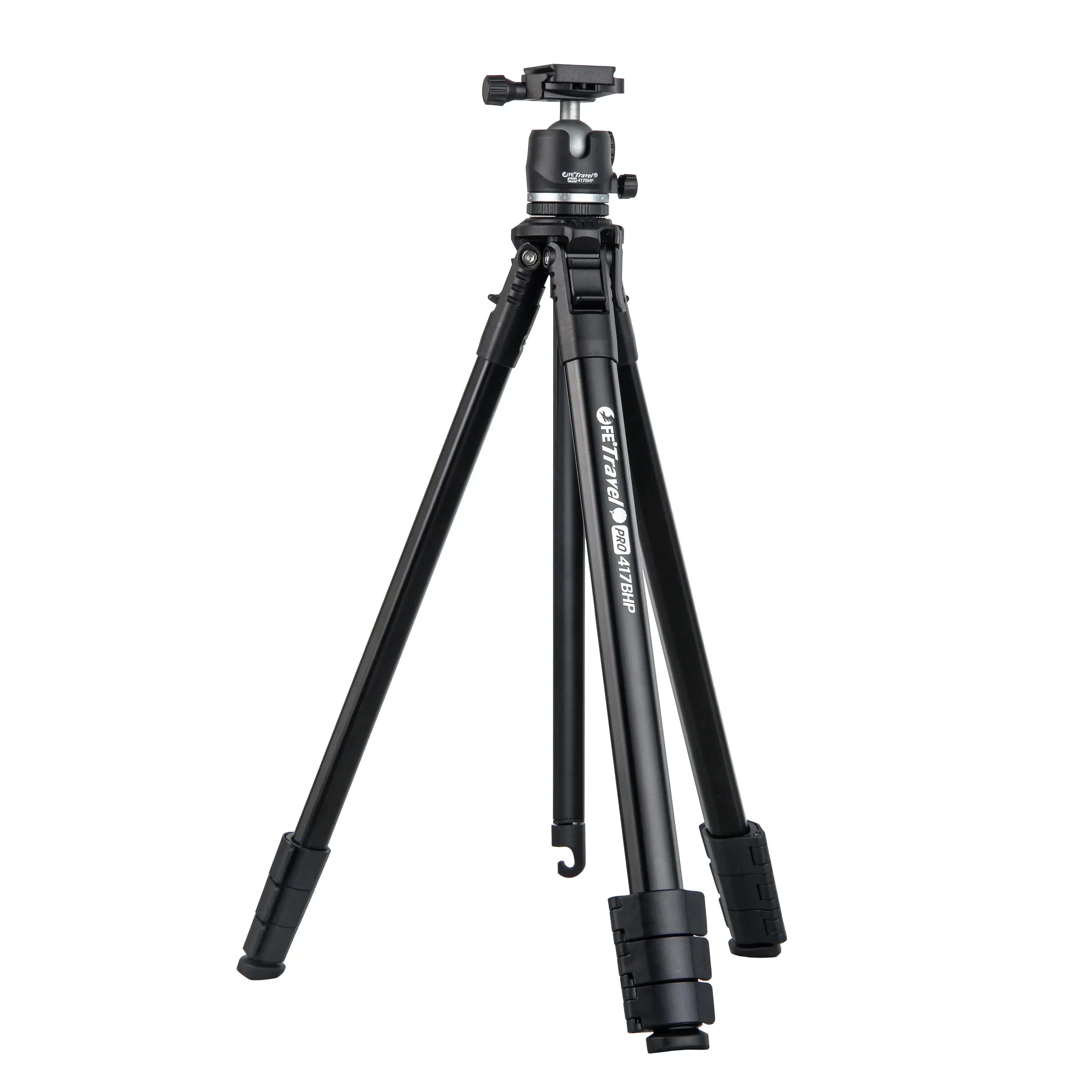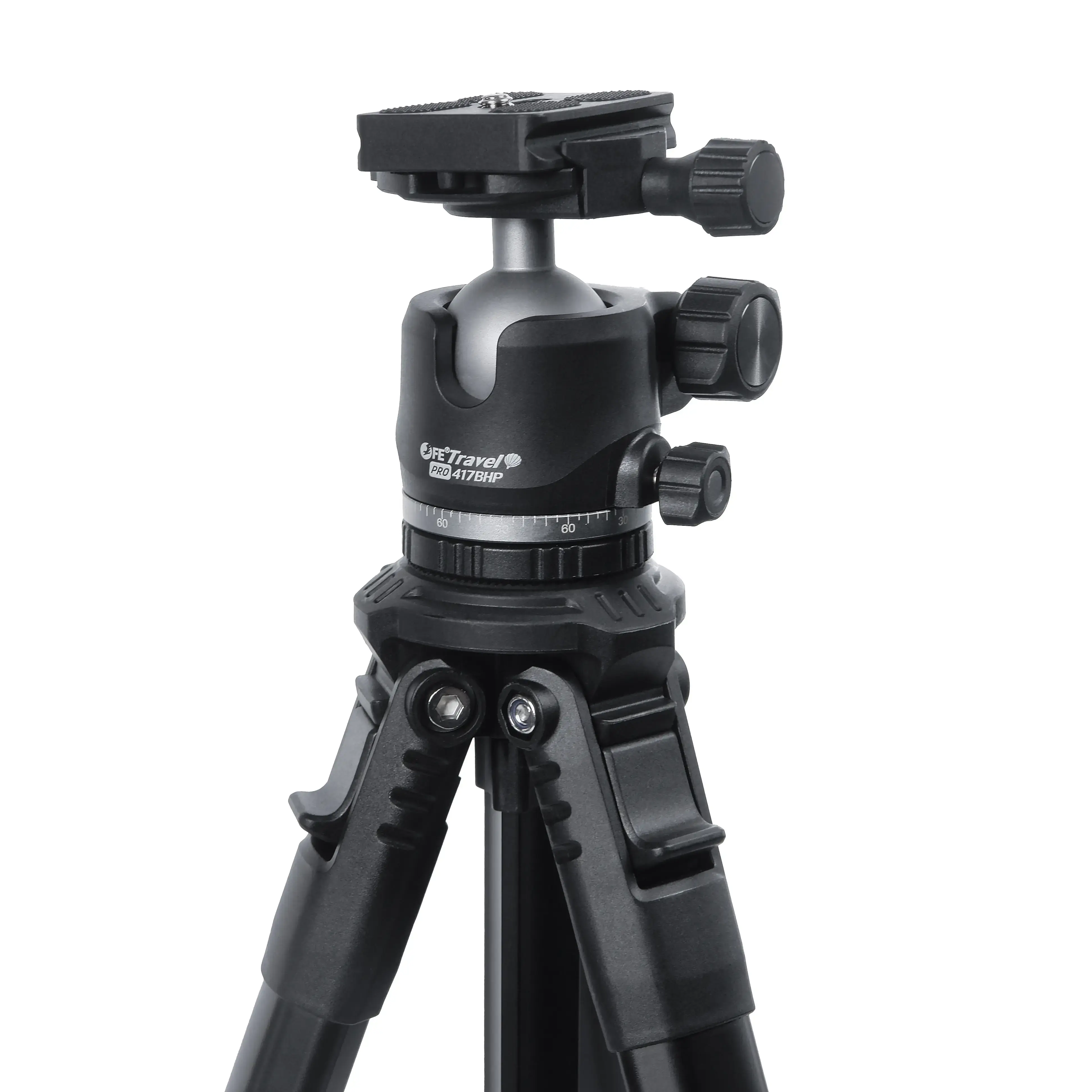Тренога Travel PRO 417BHP выполнена из алюминиевого сплава, благодаря чему конструкция штатива легкая, но прочная. Максимальная нагрузка составляет до 3.5 кг, вес самого штатива менее 1 кг.