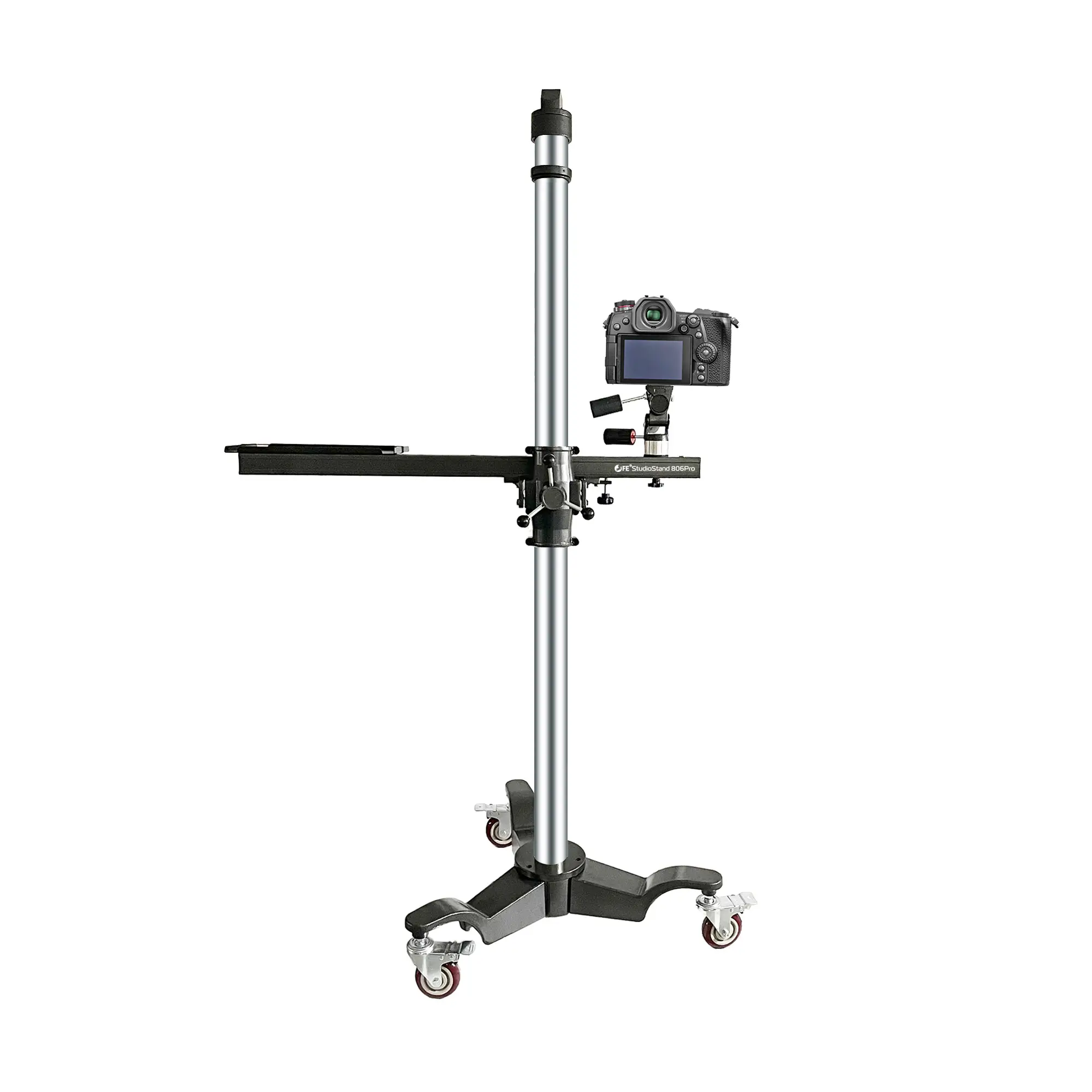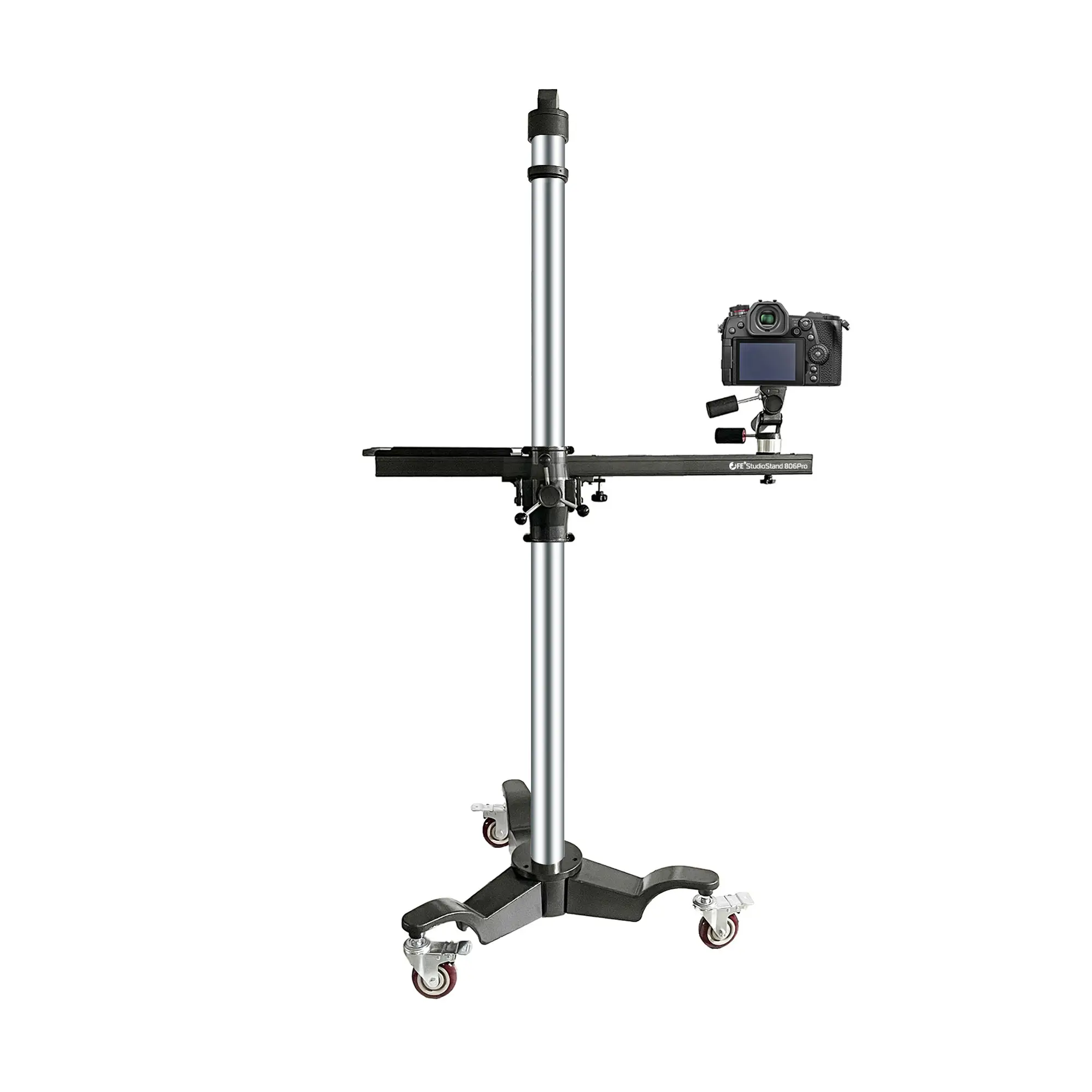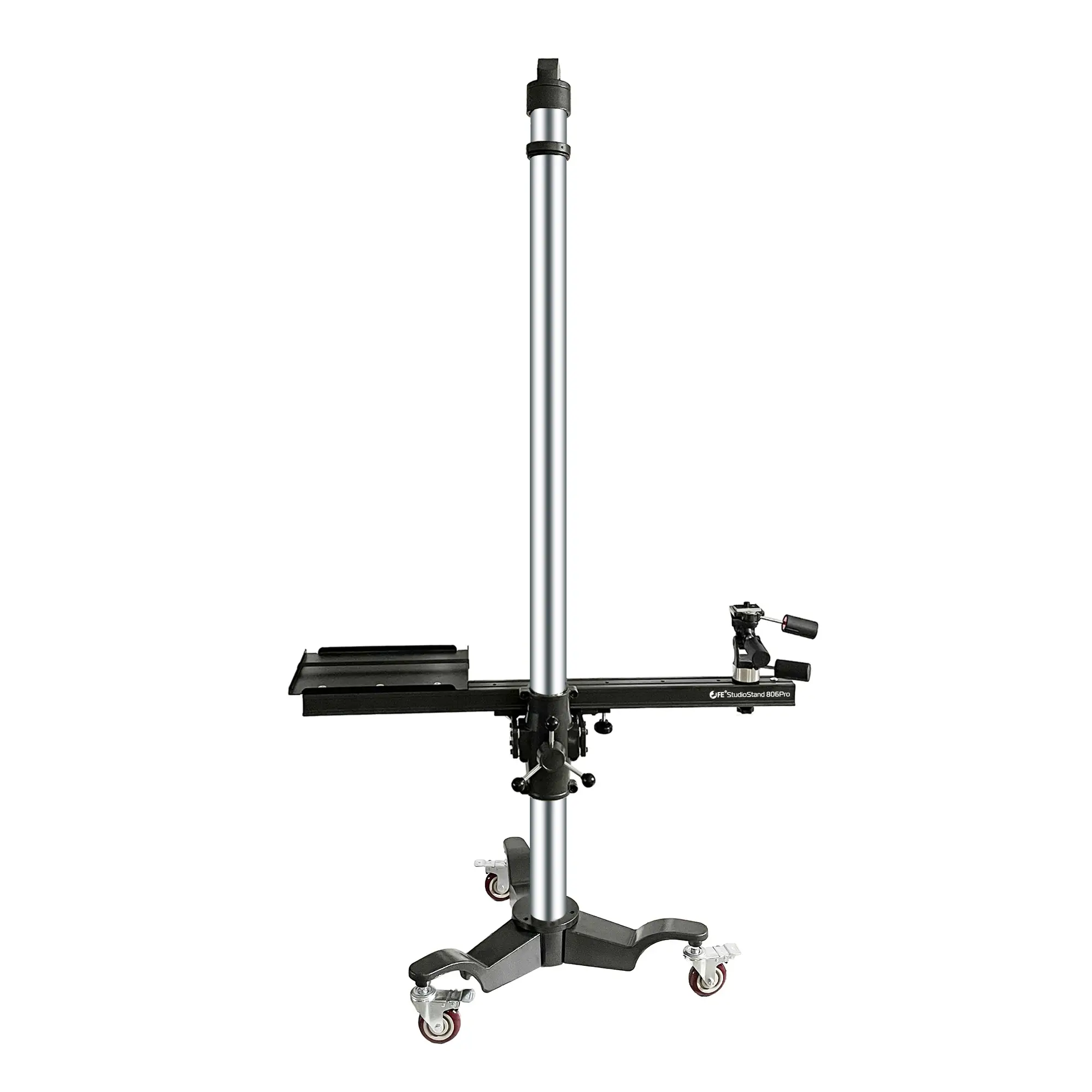Штатив на устойчивом основание с тремя колесами диаметром 100 мм легко передвигается по студии. Все три колеса оснащены независимыми тормозами, что предотвратит перемещение штатива во время съемки.