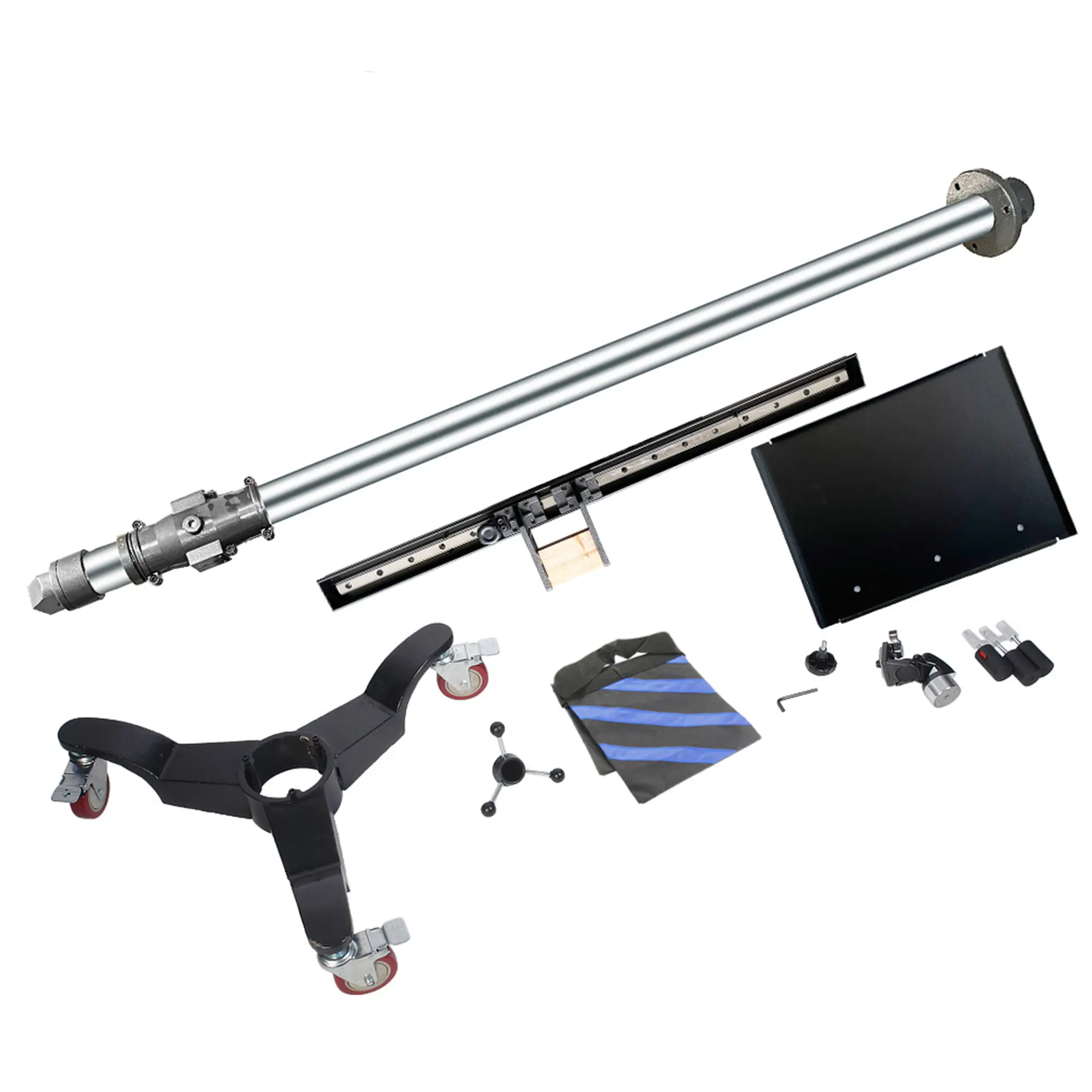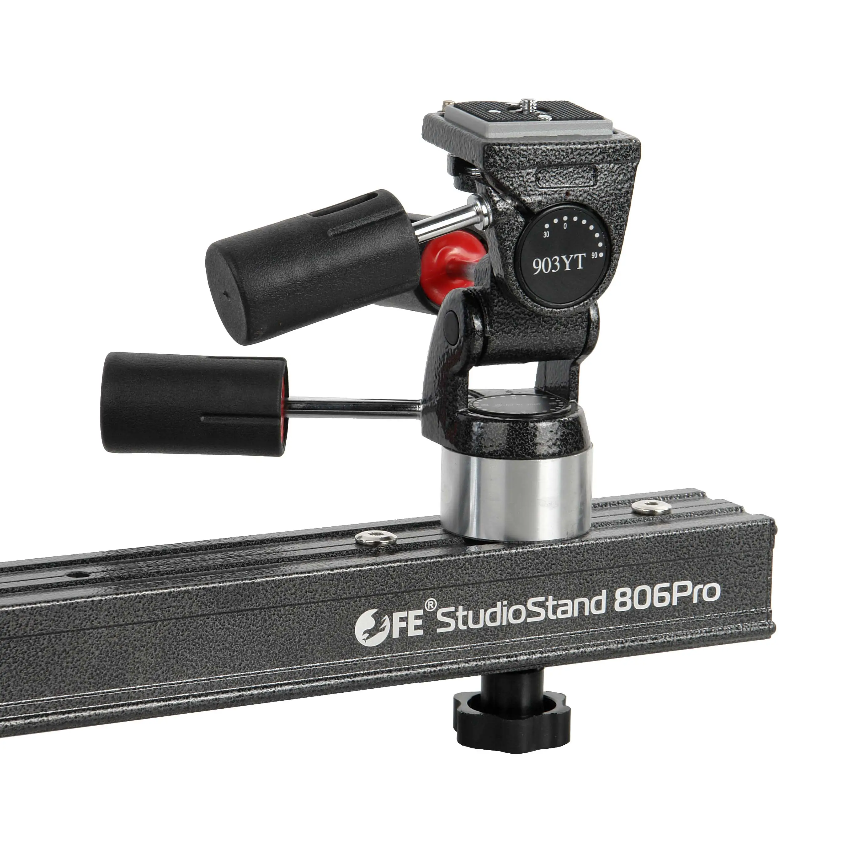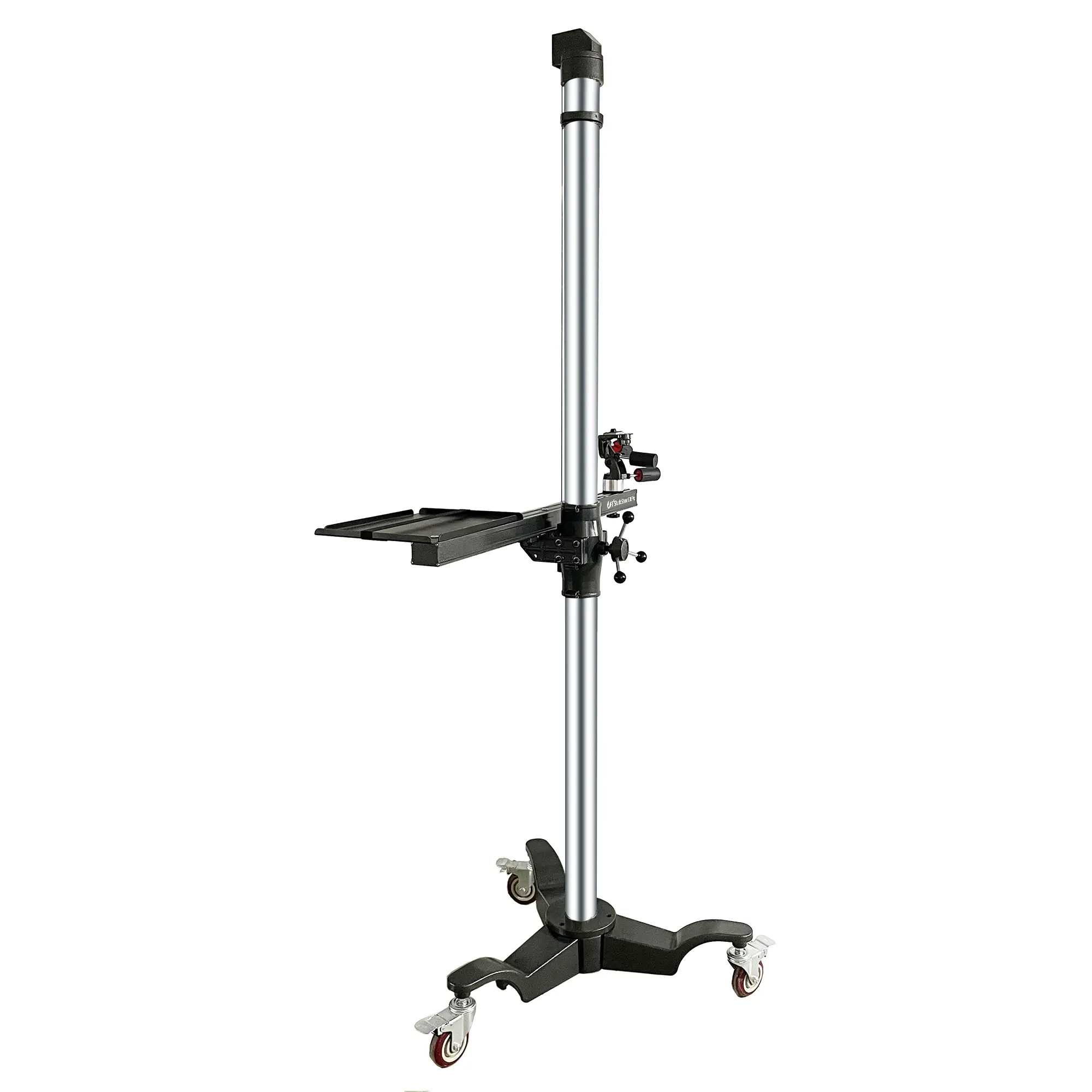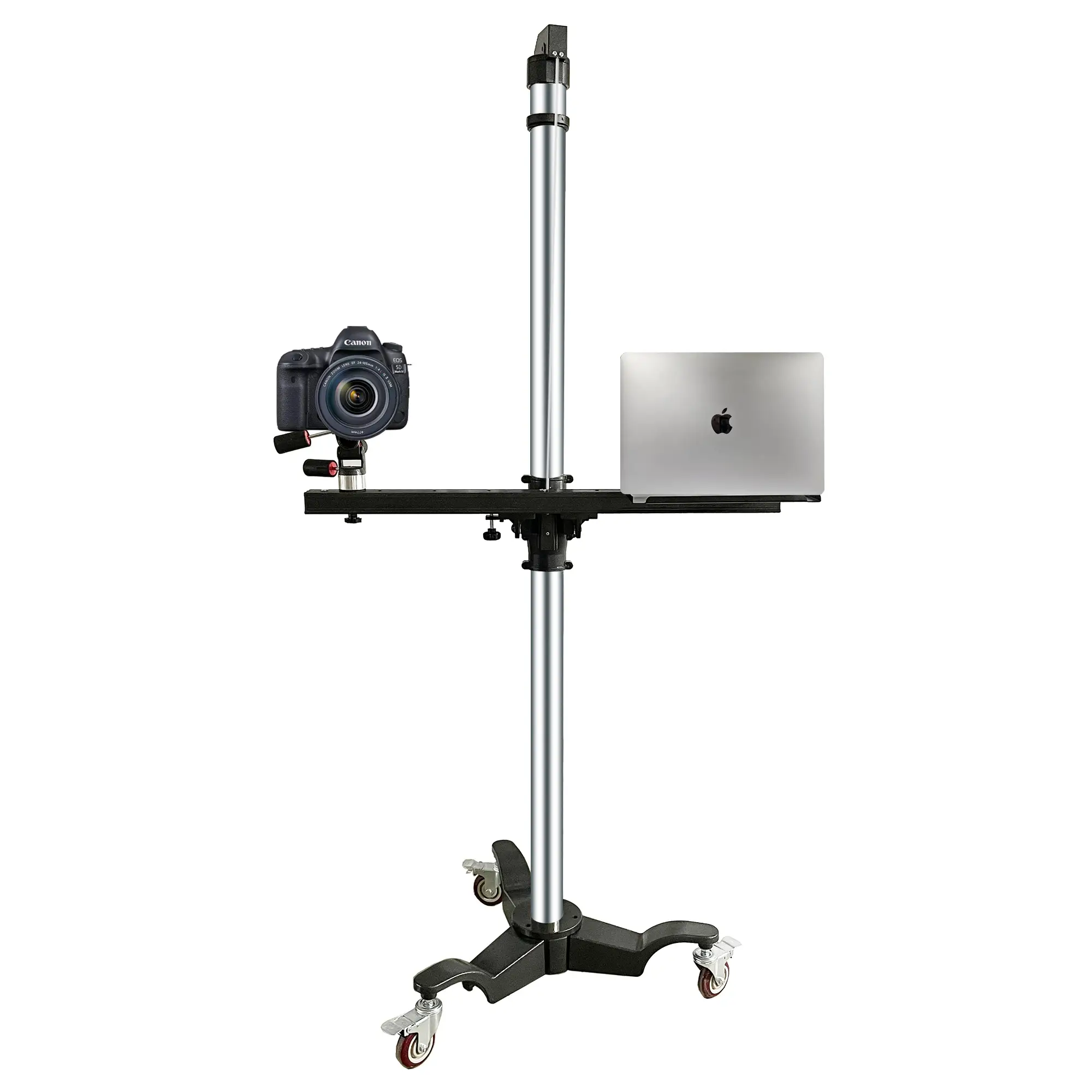 Движение камеры по горизонтали обеспечивает стальная балка длиной 103 см, плавное перемещение по которой может осуществляться на длину 56 см. С противоположной от камеры стороны балки монтируется лоток для ноутбука размером 27x37 см. Он подходит для 13-дюймовых и 14-дюймовых ноутбуков и имеет предохраняющие от падения бортики.