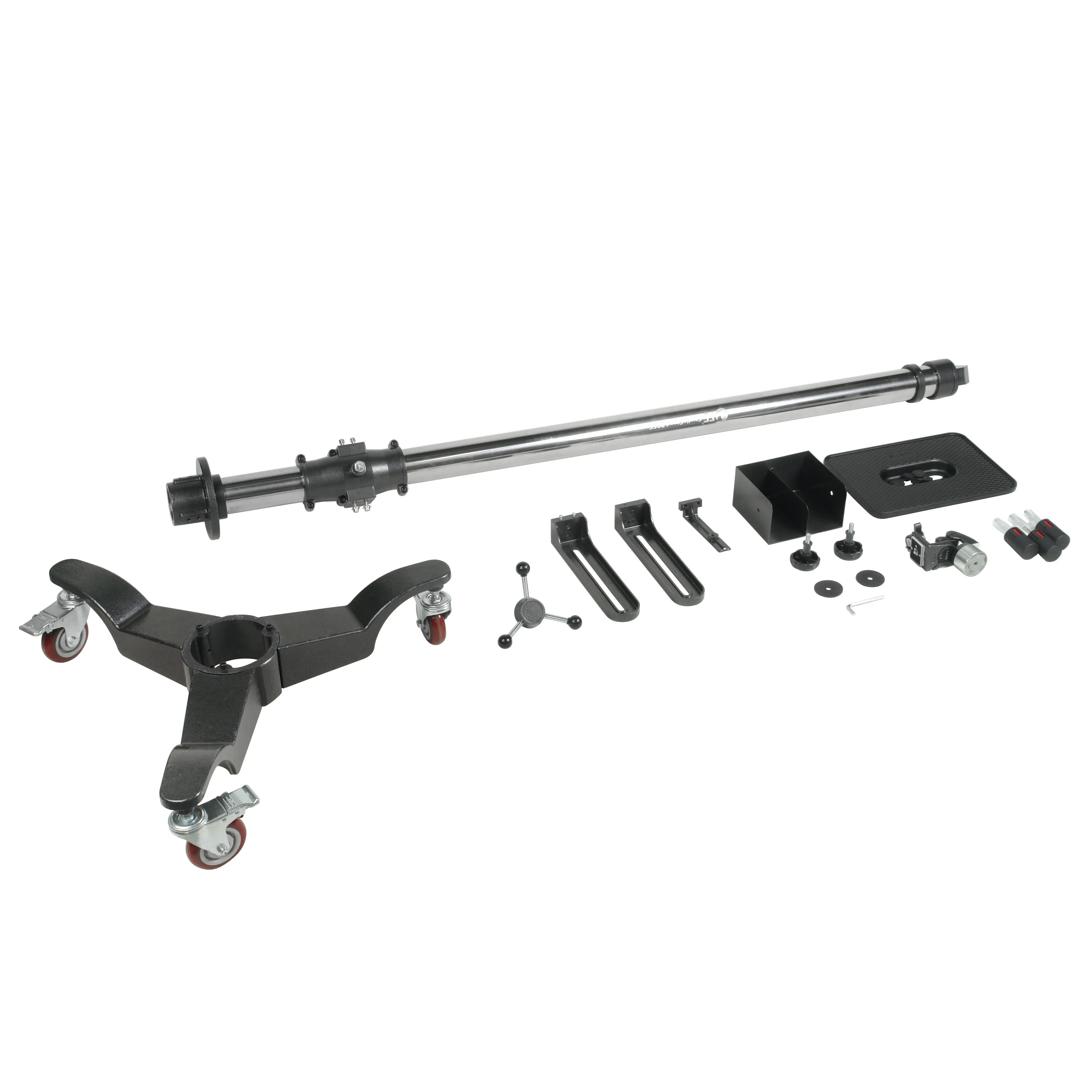 На горизонтальные штанги-консоли монтируются металлический столик (25,5 х 35,5 см) и поворотно-наклонная головка для установки камеры. Максимальный ход головки по штанге составляет 236 мм. К любой из горизонтальных штанг-консолей можно прикрепить лоток для аксессуаров.