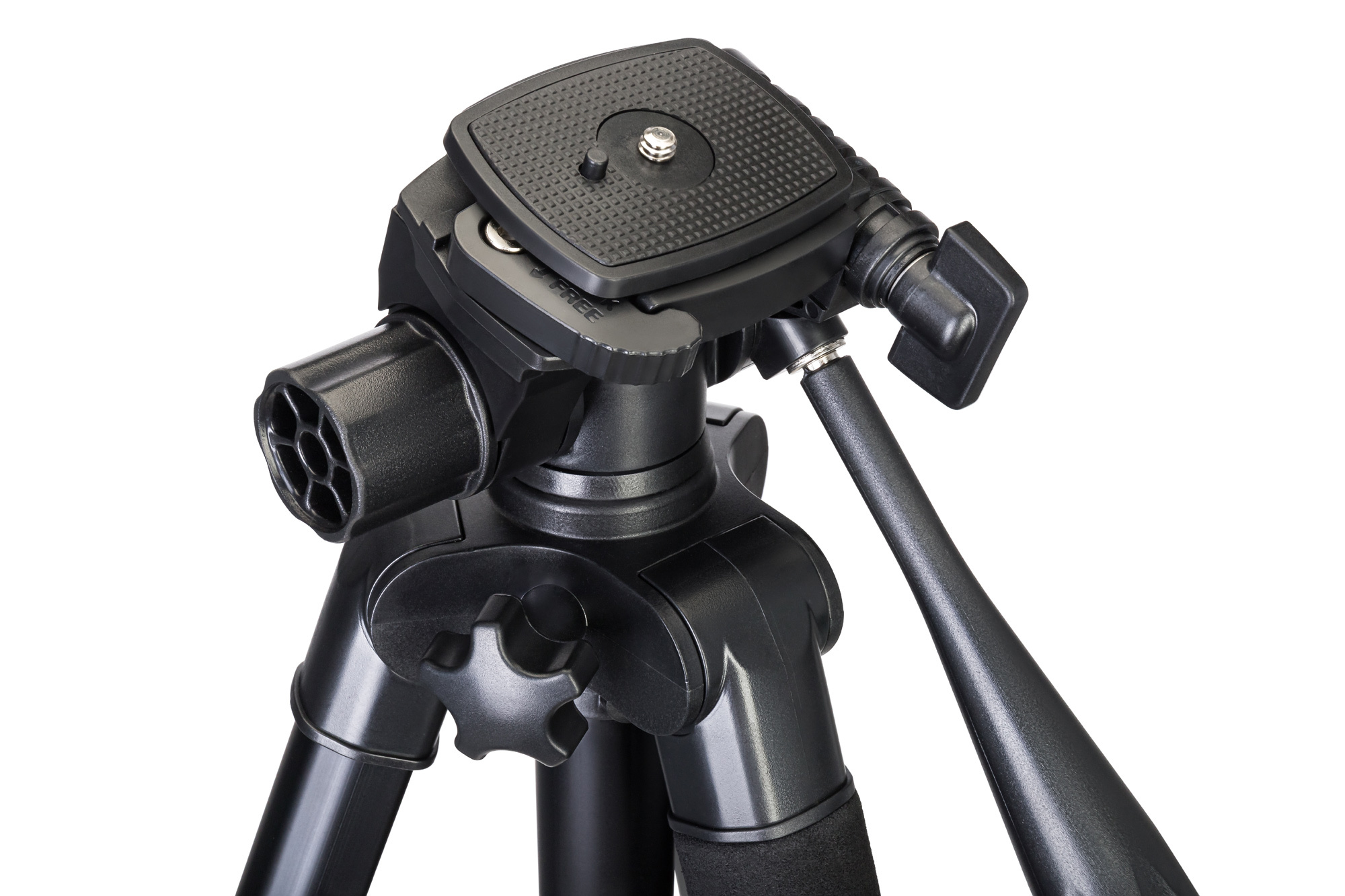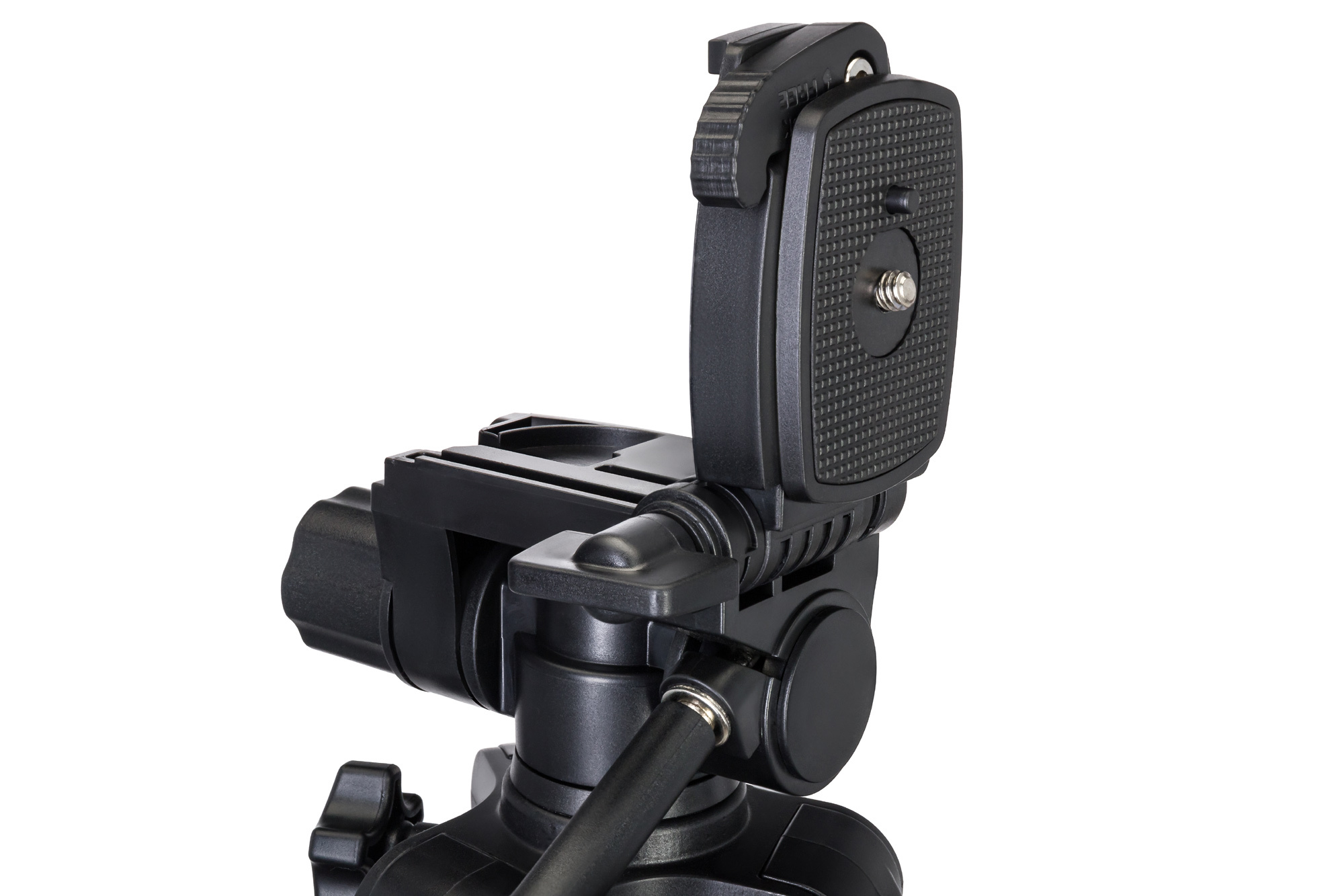 Для установки техники используется быстросъемная площадка с креплением 1/4 дюйма. Она фиксируется на поворотной штативной головке, которая может совершать полный поворот на 360° в горизонтальной плоскости. Также доступны направления вверх и вниз. Установочную площадку можно откинуть вбок на угол до 90°. На всех осях присутствуют фиксаторы – винты-барашки.