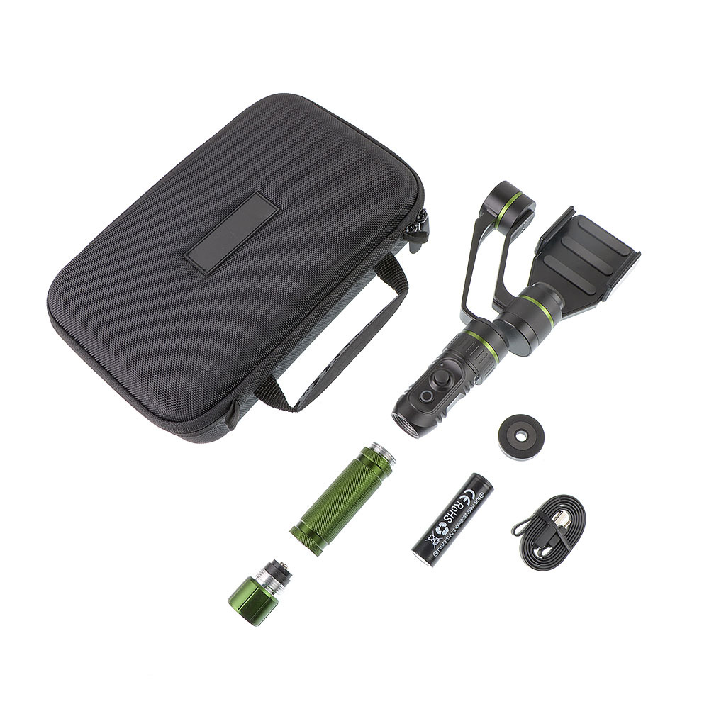Корпус стабилизатора изготовлен из алюминиевого сплава, на рукоятку присутствует насечка для лучшего удержания. Питание прибора происходит от одного аккумулятора типа 18650 Зарядка аккумулятора осуществляется через микро-USB порт на корпусе прибора. Время непрерывной работы — 5 часов (с аккумулятором ёмкостью 2600 мА·ч).